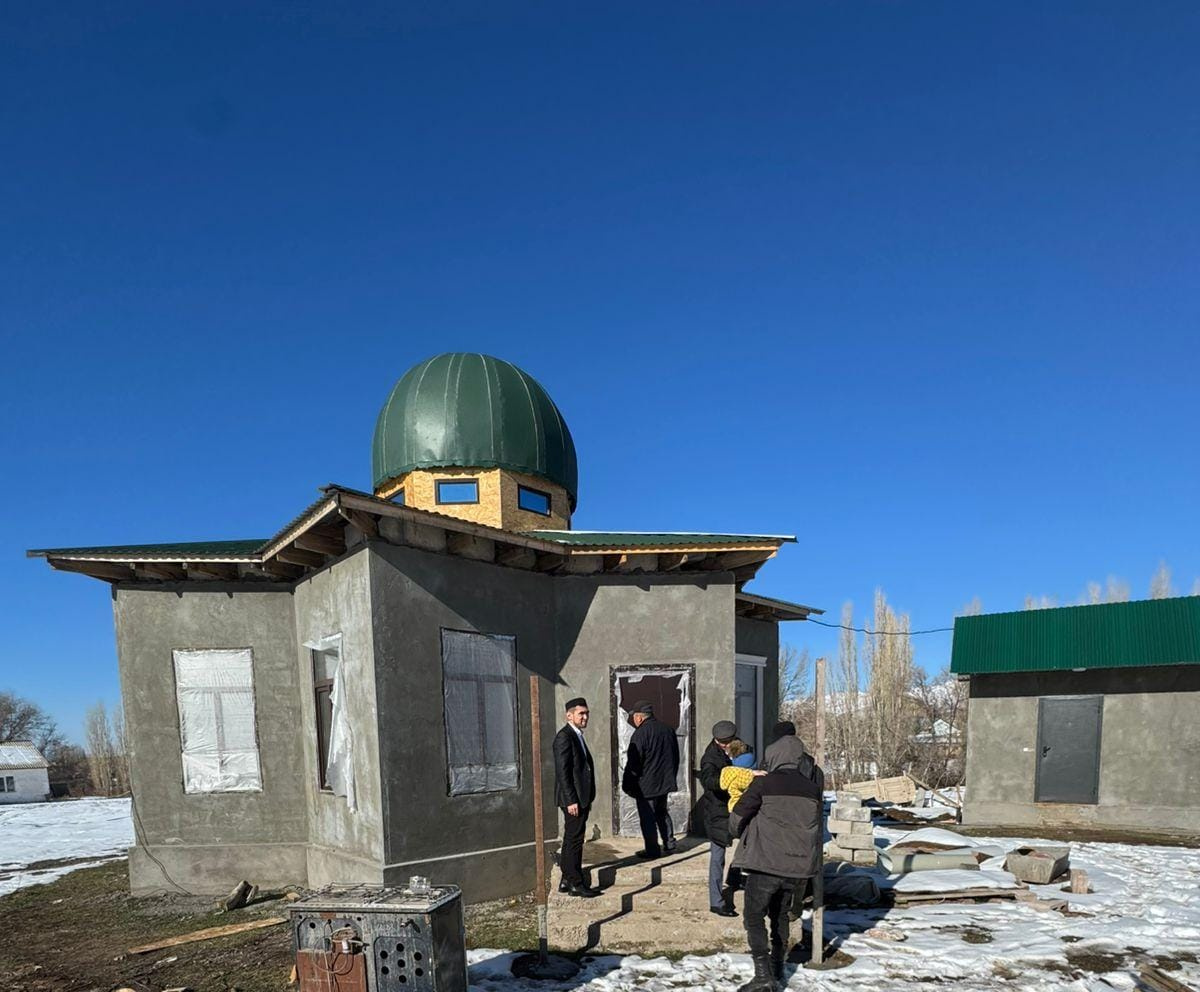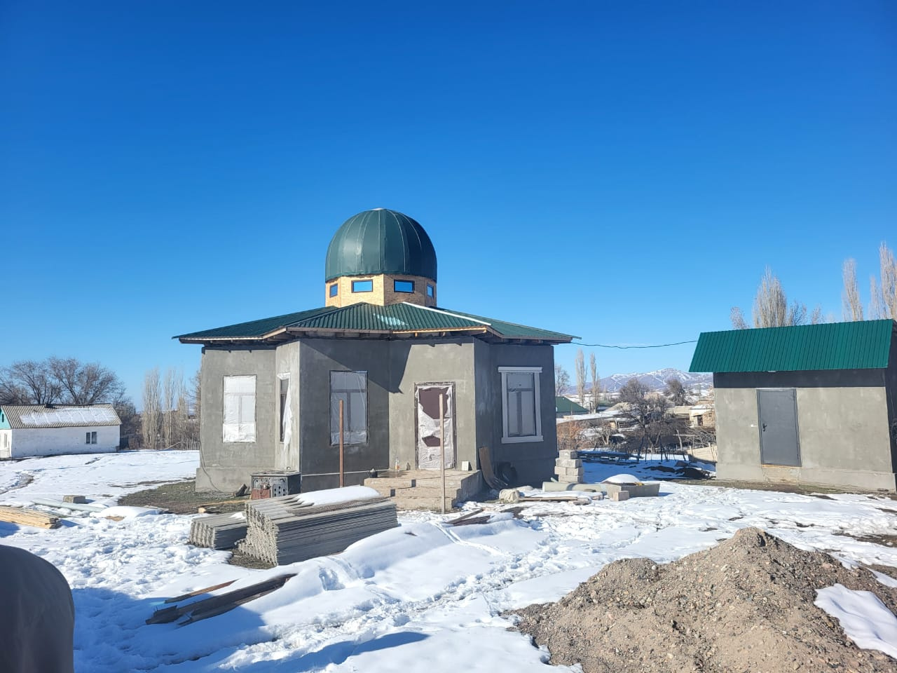 Жамағаттың қолдауымен тұрғызылып жатқан сегіз қырлы бұл ғимараттың жанынан асхана да салынуда. Ел игілігі үшін бой көтеріп жатқан осы құрылыстарға атсалысып жүрген барша азаматтарға Алла разы болсын! Қайырымды істеріңіз сауаптан жазылып, Алланы еске алатын бас қосуларымыз көбейе берсін!