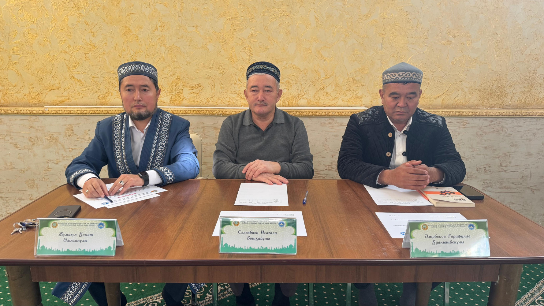 Арнайы шараға ҚМДБ бекіткен Дін мен дәстүр бағытының Жамбыл облысы бойынша кураторы Ғарифулла Қуанышбекұлы, Байзақ аудандық билер кеңесінің төрағасы Исағали Бошқайұлы және Байзақ ауданының бас имамы Қанат Әділханұлы қатысып, сайысқа төрелік етті.