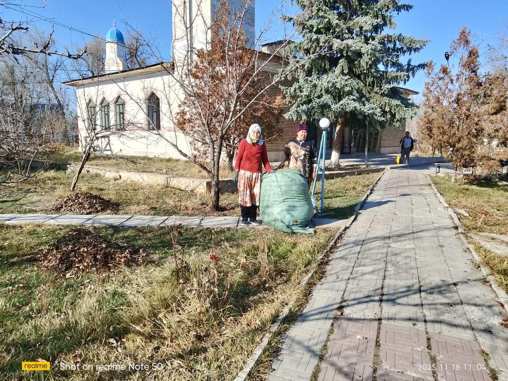 Жуалы ауданы, Бауыржан Момышұлы ауылдық «Толымбай тегі Зиябек» мешітінің айналасын қоқыстардан, күзгі жапырақтан тазалауға Бауыржан Момышұлы ауыл әкімі Қанатбекұлы Рәтбектің ұйытқысымен қоғамдық жұмысшылар тартылды. Аудан бас имамы Есет Тұрдыбайұлы ризашылығын білдіріп, батасын берді.