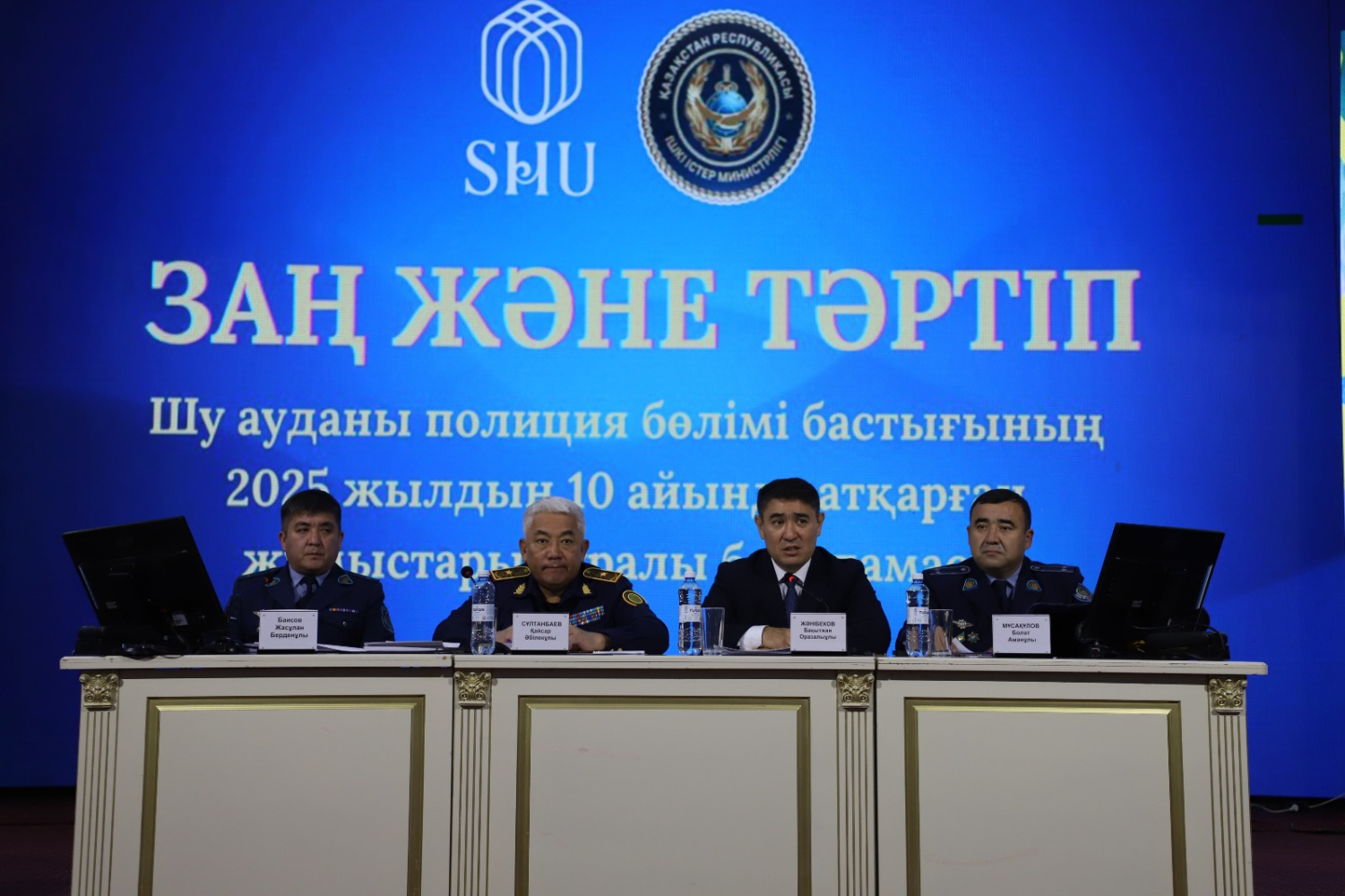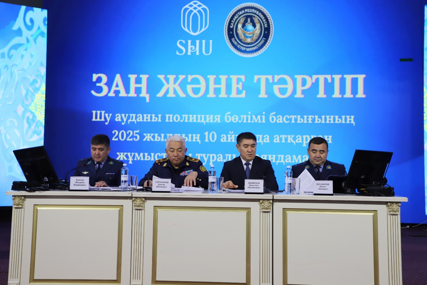 Жиын барысында Қайсар Әбілекұлының Шу өңірінің тарихы, әлеуметтік-экономикалық әлеуеті, қоғамдық тәртіп мәселелері туралы және аудандық полиция бөлімінің бастығы Мұсақұлов Болат Аманұлының 2025 жылдың 10 айында атқарған жұмыстары туралы баяндамасы тыңдалды.