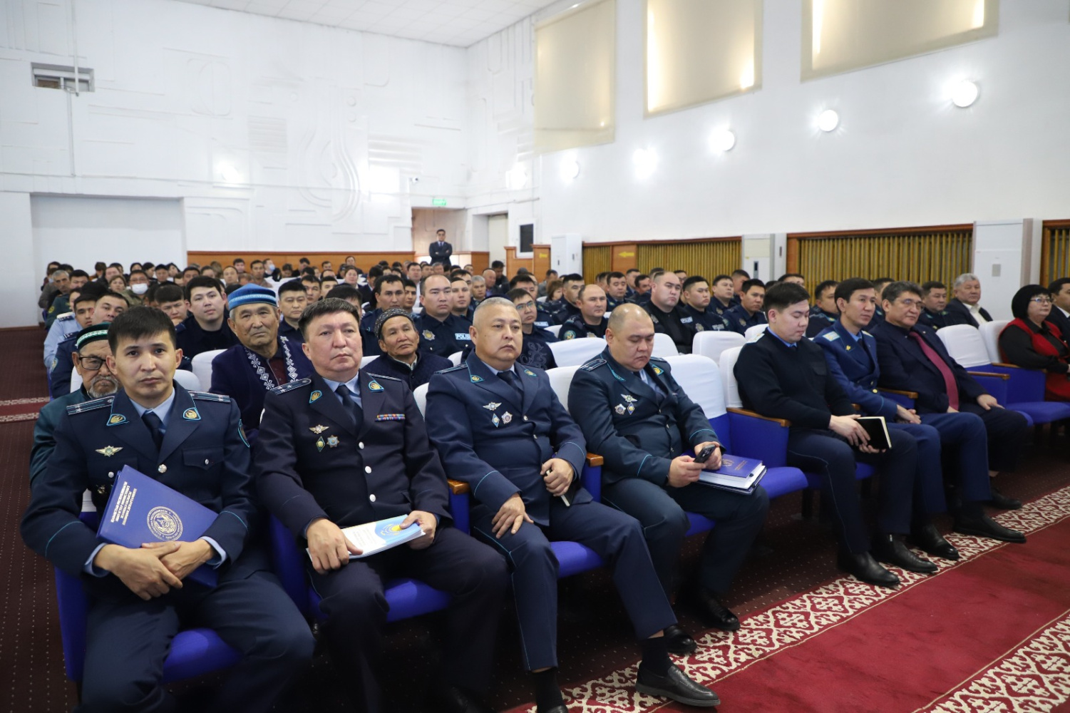Мемлекет басшысы Қасым-Жомарт-Тоқаевтың “Заң мен тәртіп” қағидатын ілгерілету мақсатында аудандық мәдениет үйінде аудан әкімі Жәнібеков Бақытжан Оразалыұлының төрағалығымен және Жамбыл облысы ПД бастығы Генерал-майор Сұлтанбаев Қайсар Әбілекұлының қатысуымен жиын өтті.