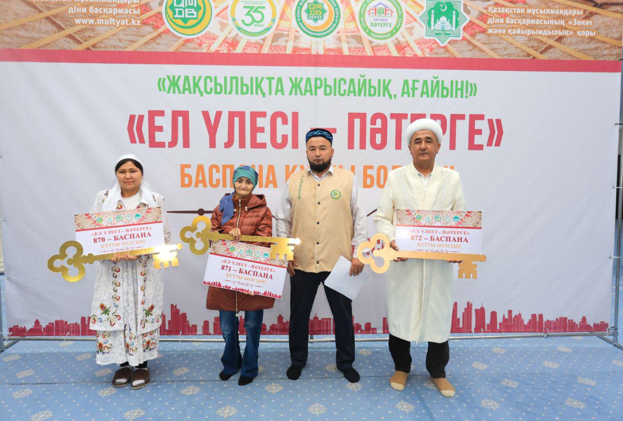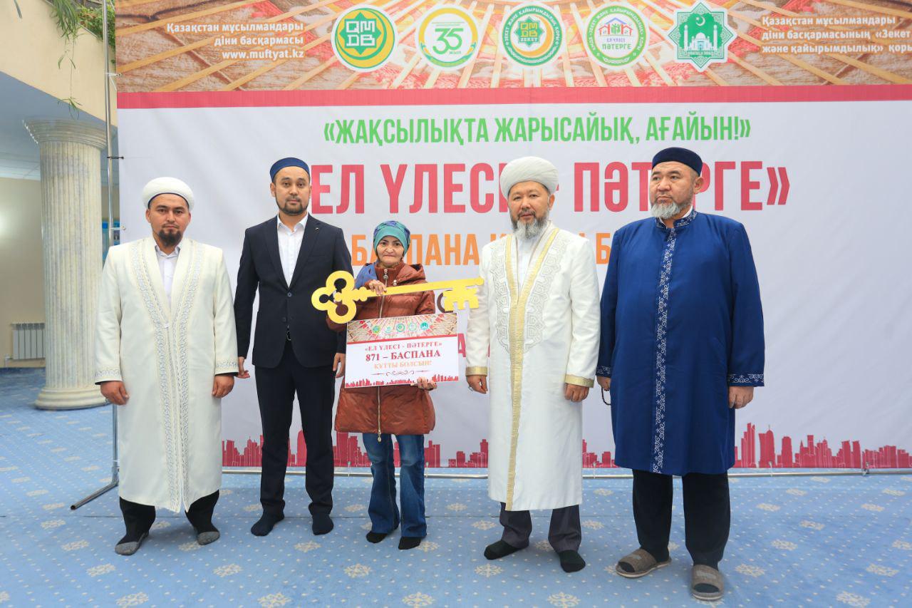 Бас мүфти ҚМДБ жанындағы «Зекет және қайырымдылық» қорының «Ел үлесі – пәтерге» жобасы аясында жалғыз басты аналар – Гүлмира Болатханқызына, Әсел Әбутәліпқызына баспана кілтін берді. Сондай-ақ осы жоба аясында қызметтік баспана Қордай ауданы Отар ауылының имамы Рахат Рахымбердиевке бұйырды.
