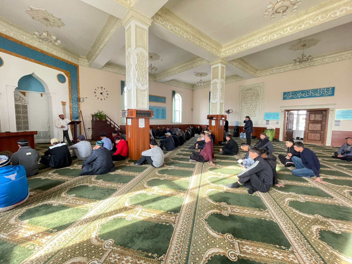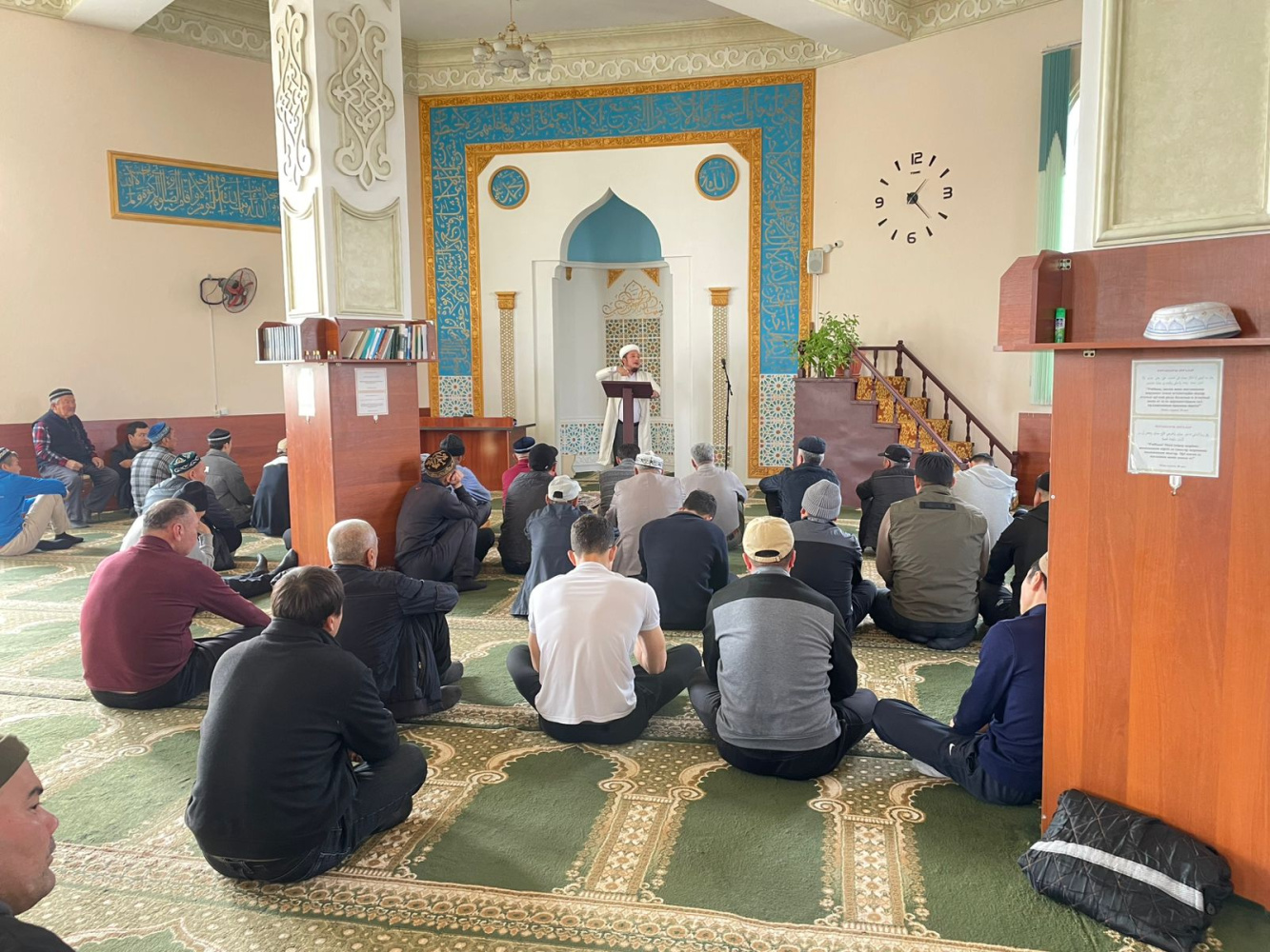 Жамбыл аудандық "Бәйдібек" мешітінің бас имамы Даурен Куттыбаев мешітке жиналған жамағатқа "Дін тәрбие және отбасы" тақырыбында уағыз-насихат айтты.