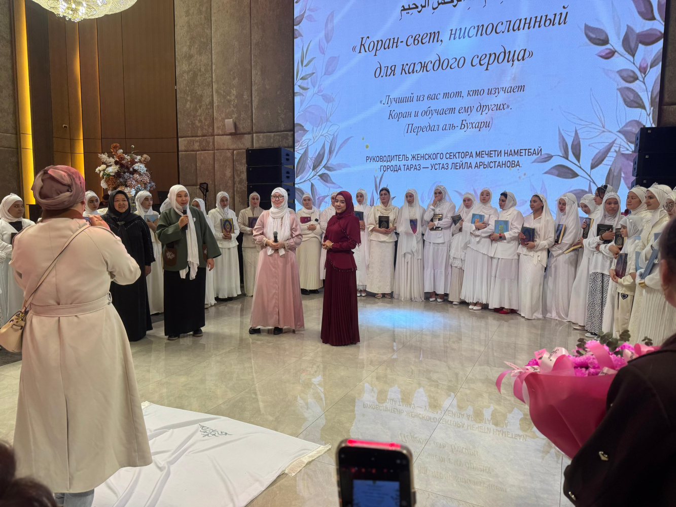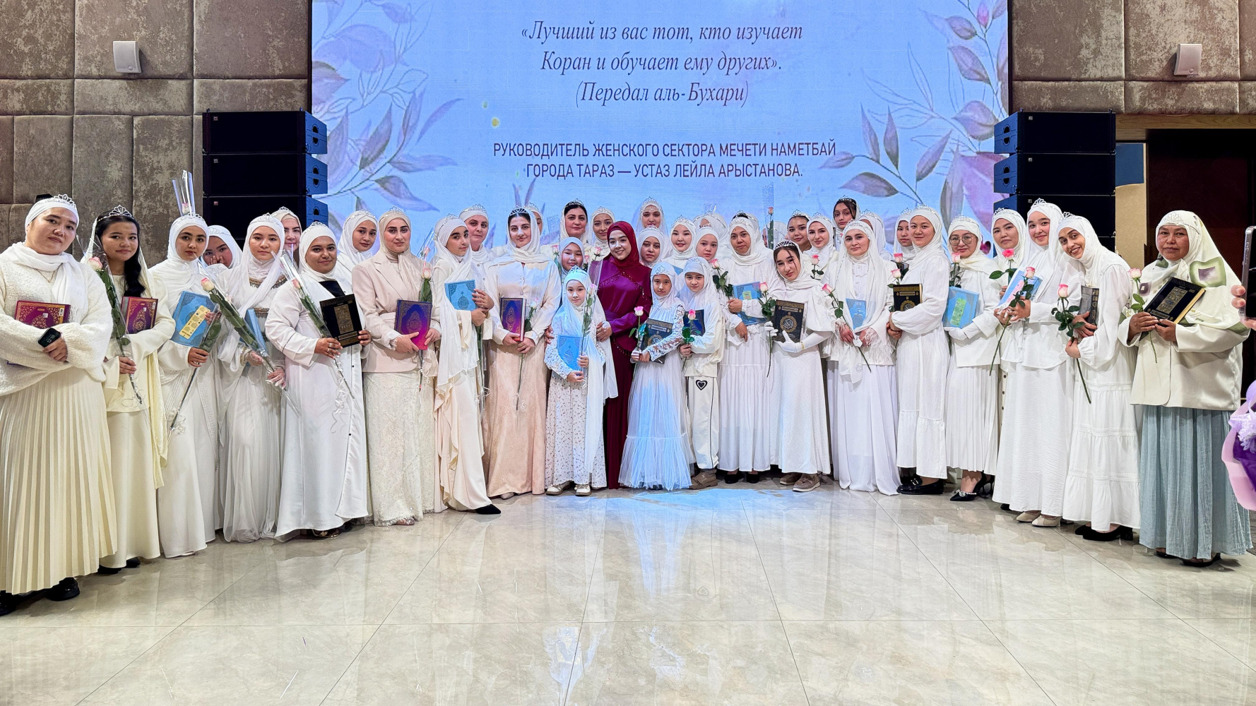 ҚМДБ-ның Жамбыл облысы бойынша әйел-қыздар секторының және Нәметбай мешітінің ұйытқы болуымен Тараз қаласында ерекше рухани мағынаға толы Құран кеші өтті. Арнайы мейрамханада ұйымдастырылған бұл мерекелік жиын әліппе кезеңін аяқтап, Құран оқудың келесі сатысына өткен 50 қыз-келіншекке құрмет көрсету мақсатында жасалды.