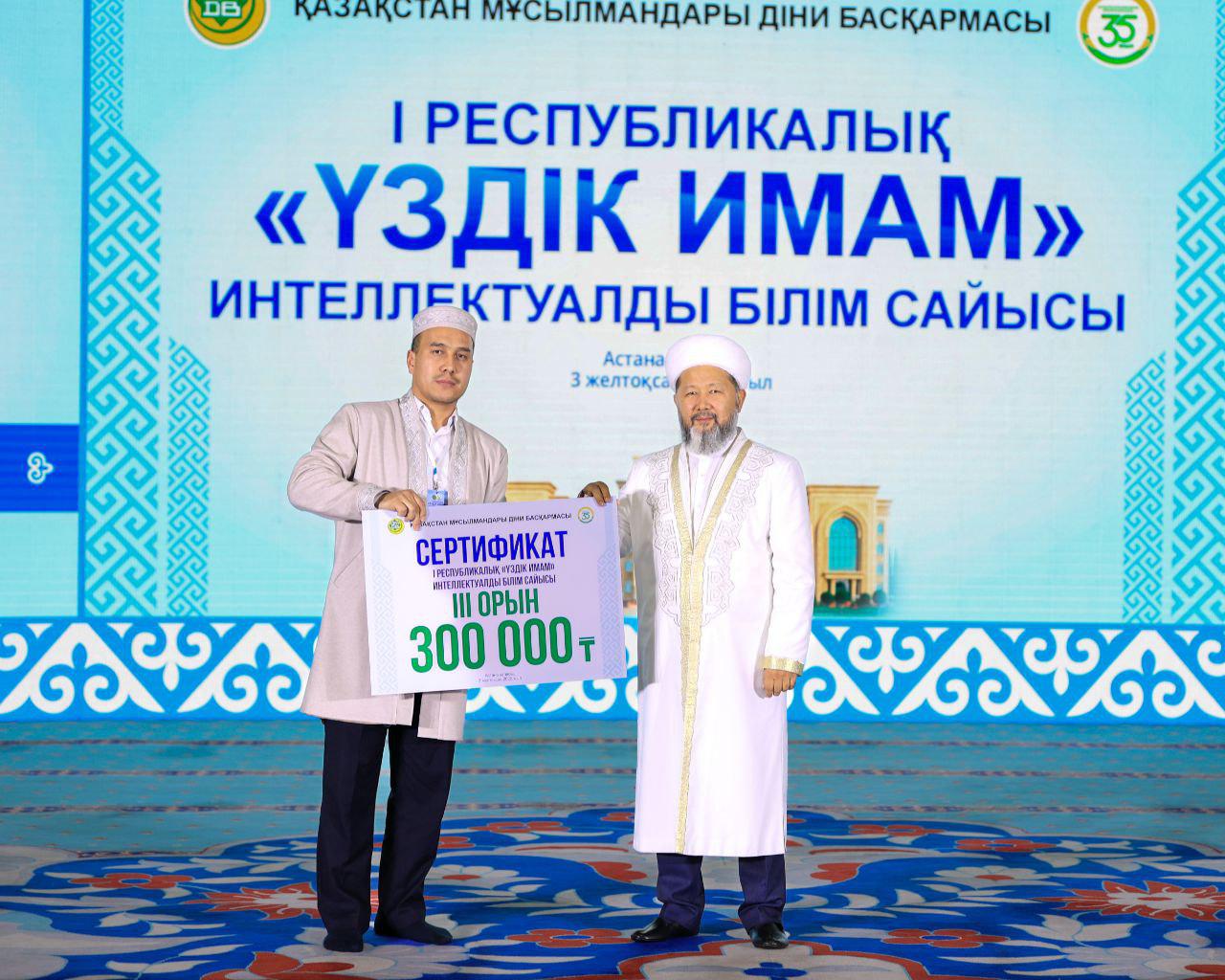 - III орын: Қуаныш Тоқсанбайұлы Әбішев – Алматы қалалық Орталық мешітінің наиб имамы (300 мың теңге)