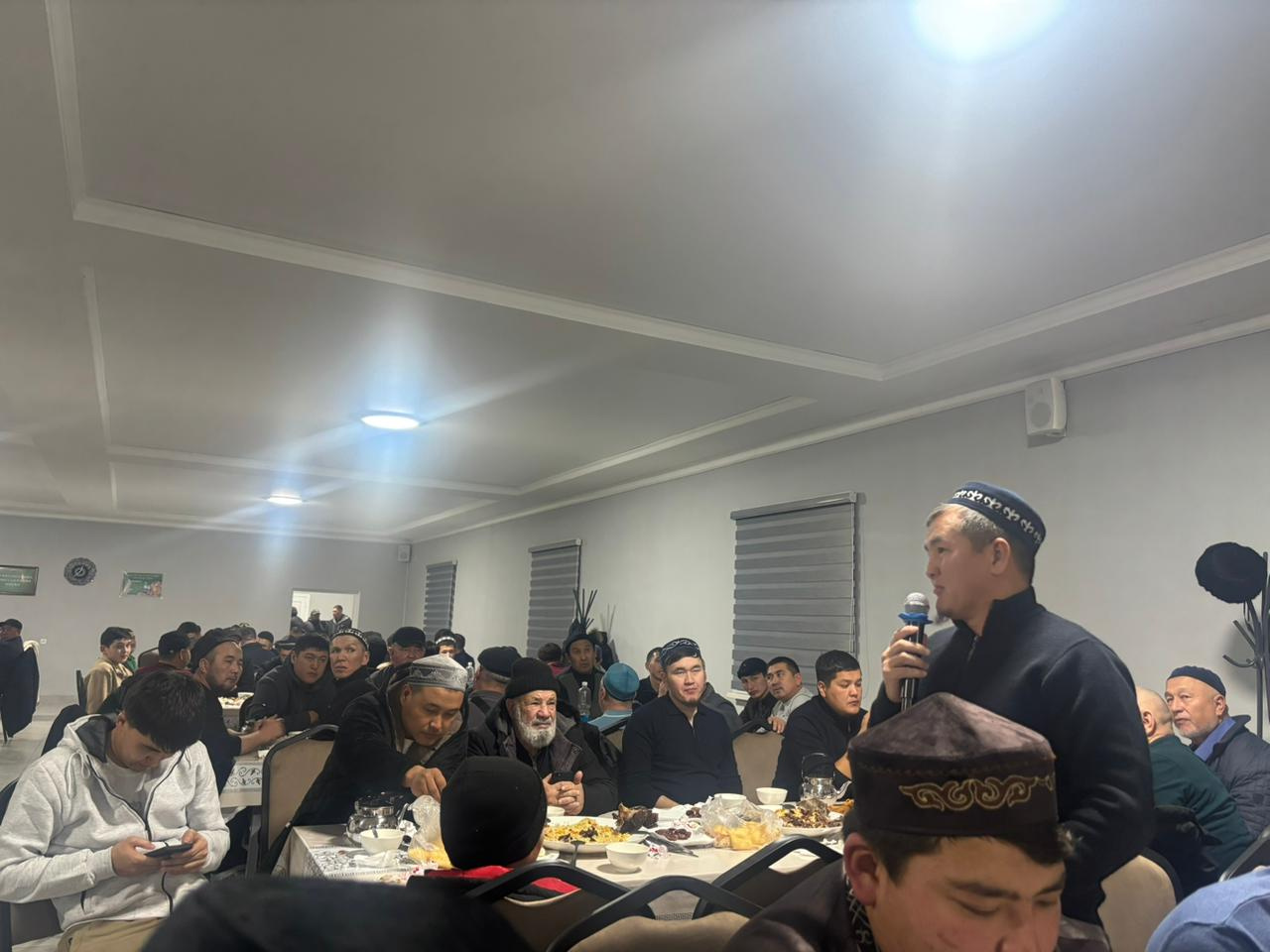 Жиын «Достық» мешітінің имамы Баурыжан Пирназовтың Құран оқуымен және «Рахымбай ата» мешітінің имамы Токушбеков Серікханның бата беруімен басталды. Ақ дастарханға аудан ауылдарының мешіт қызметкерлері мен жамағаттары қатысты.