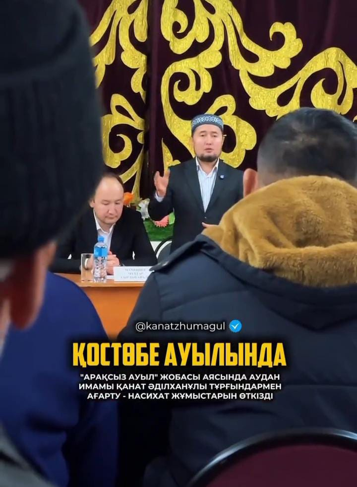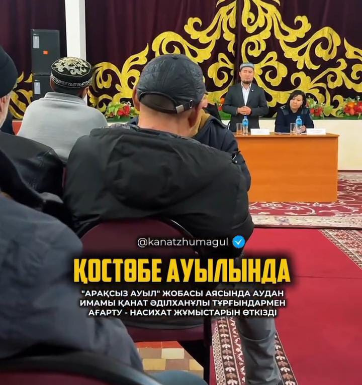 «Арақсыз ауыл» жобасы аясында Қостөбе ауылында Байзақ ауданының бас имамы Қанат Әділханұлы тұрғындармен кездесіп, насихат жұмыстарын жүргізді.