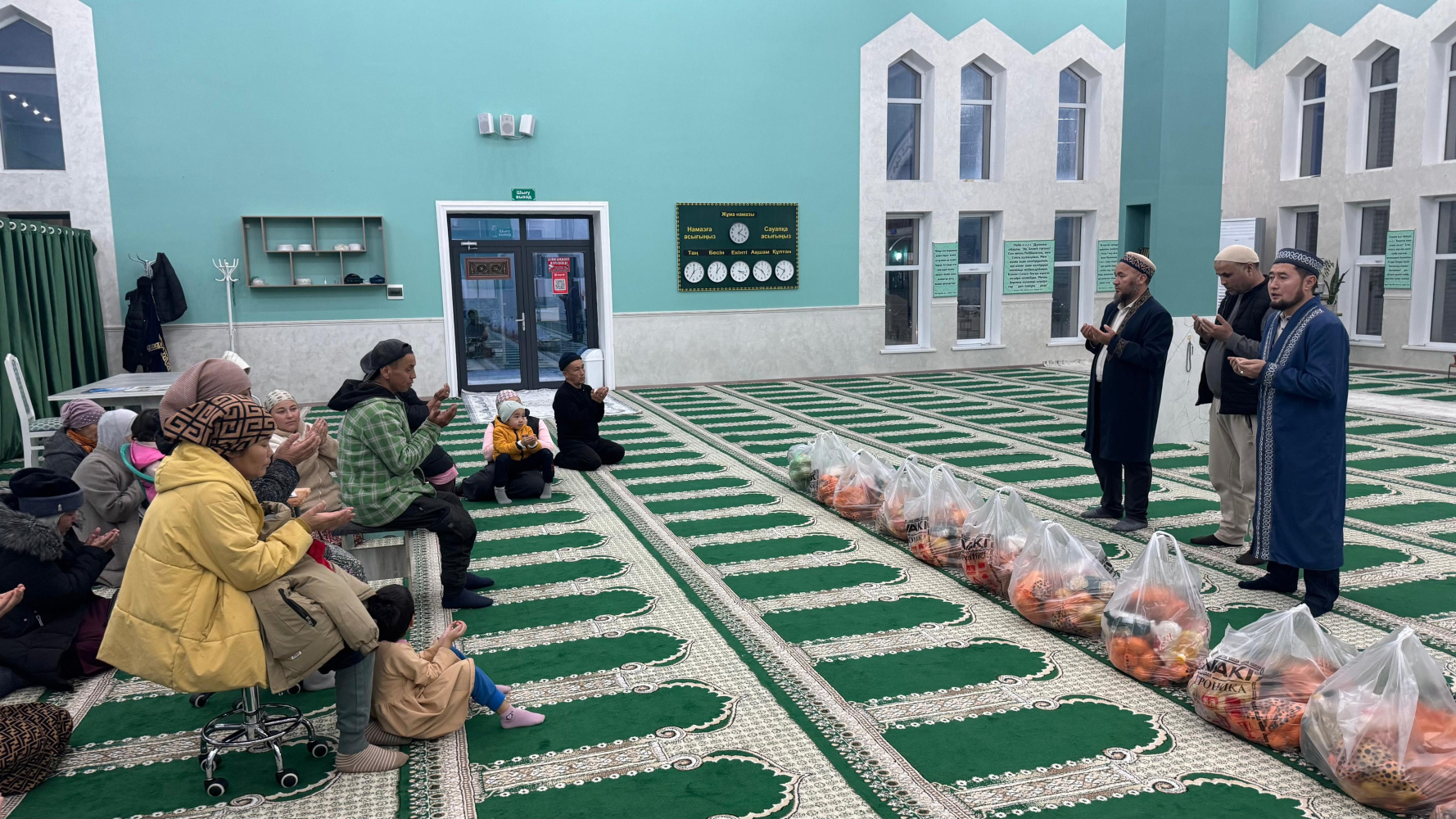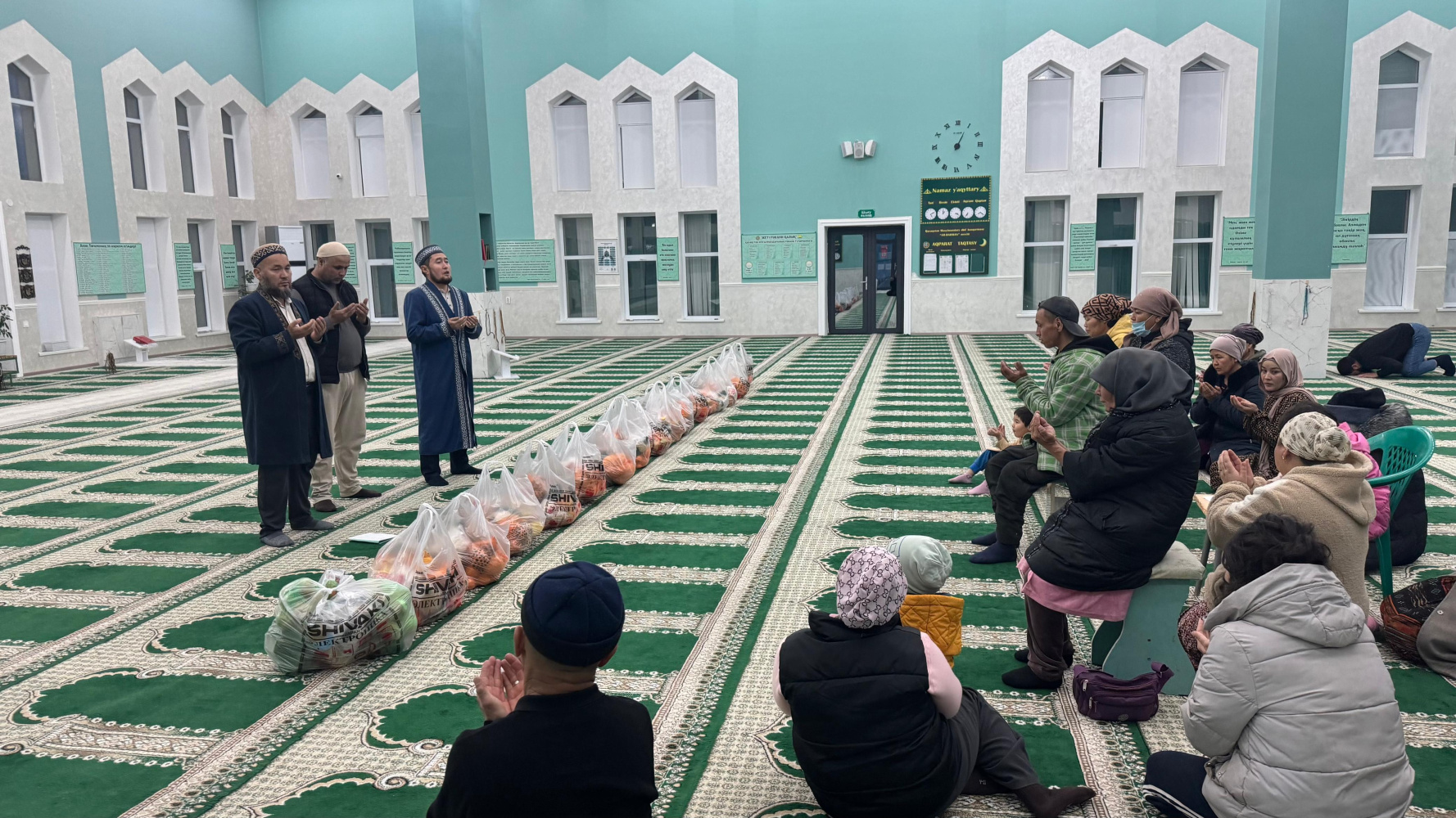 Шараға аудан бас имамы Қанат Жұмағұл қатысып, 18 отбасыға 200 000 теңге көлемінде алынған жеміс-жидек және азық-түлік салынған пакеттер үлестірілді. Аудан бас имамы Қанат Әділханұлы көпшілікті қасиетті үш айдың кіруімен құттықтады.