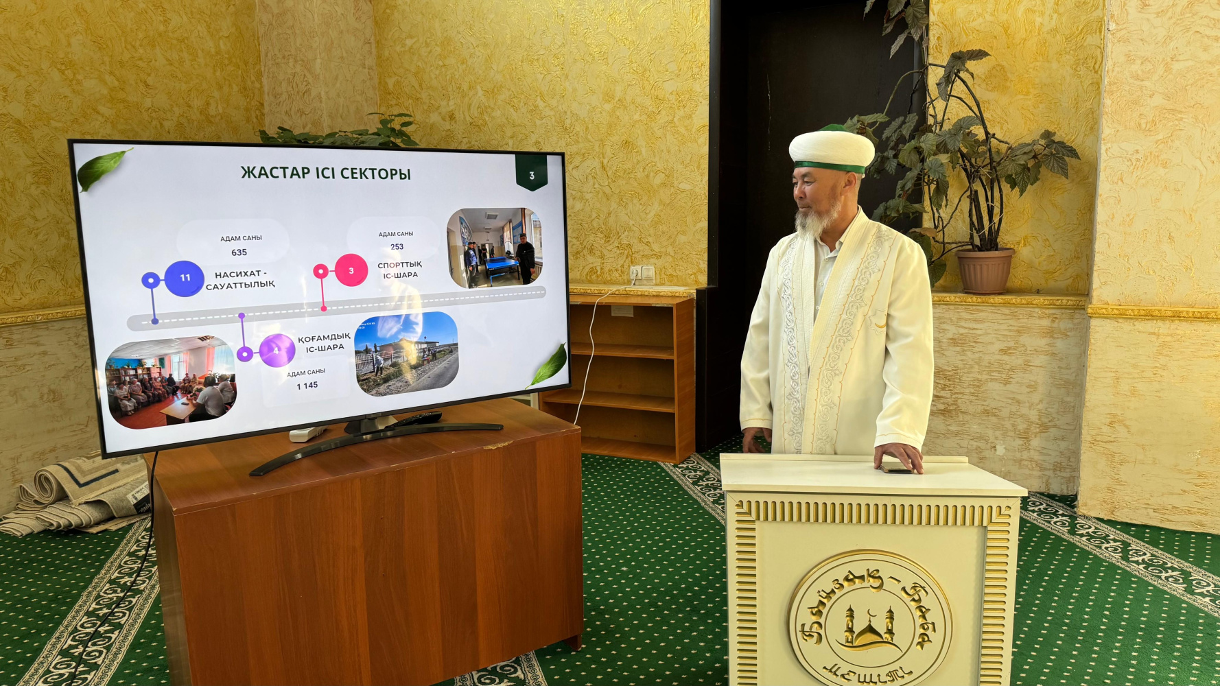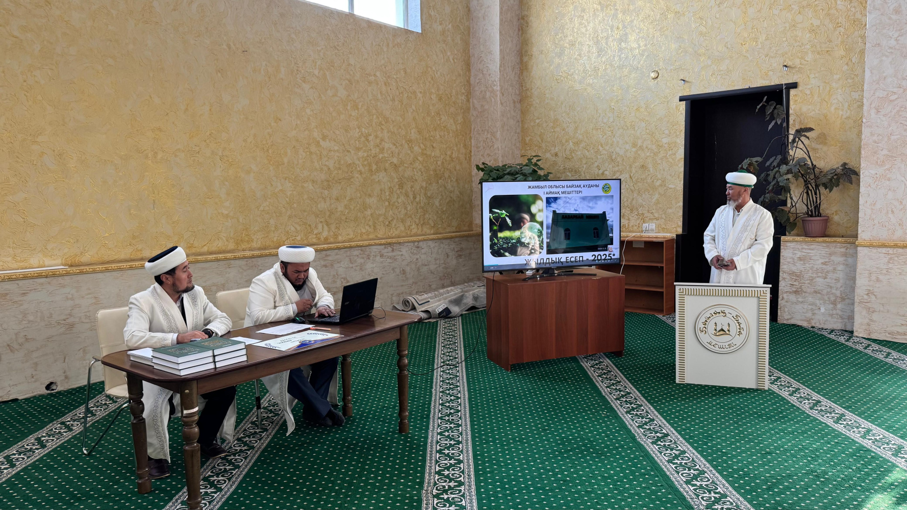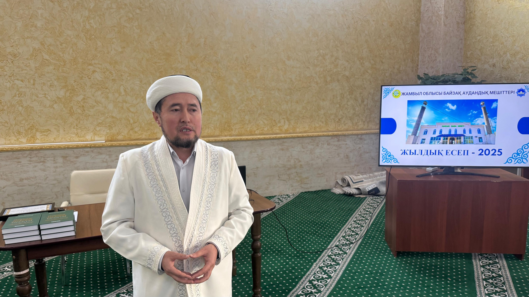 ҚМДБ Жамбыл облысы Байзақ ауданның бас имамы Қанат Әділханұлының жетекшілімен өткен қортынды жиналыста ауданға қарасты 5 аймақ жетекшілері 2025 жылдың қорытынды есебін баяндады.