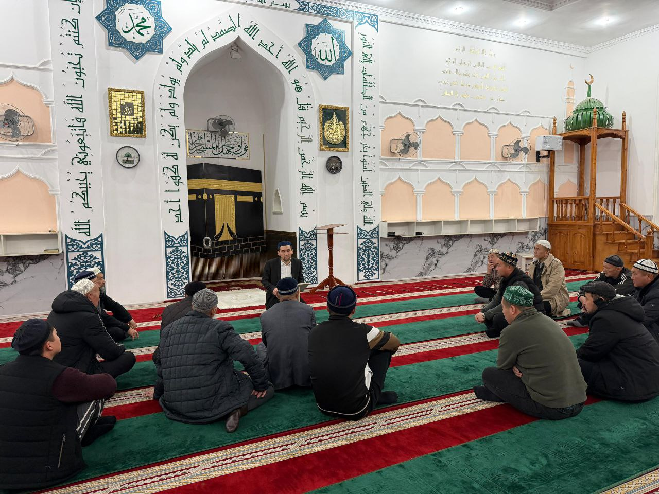 Намаздан кейін мешіт жамағатымен жүздесіп, олардың мұң-мұқтажы мен ұсыныс-пікірлерін тыңдады. Кездесу барысында имамның жамағат алдындағы, жамағаттың имам алдындағы міндеттері сөз болып, қойылған сұрақтарға тұшымды жауаптар берілді. Алла Тағала баршамызға бірлесе отырып ислам дінінің жүгін көтеріп, қоғамға, адамзатқа пайдалы істер атқаруды нәсіп етсін!
