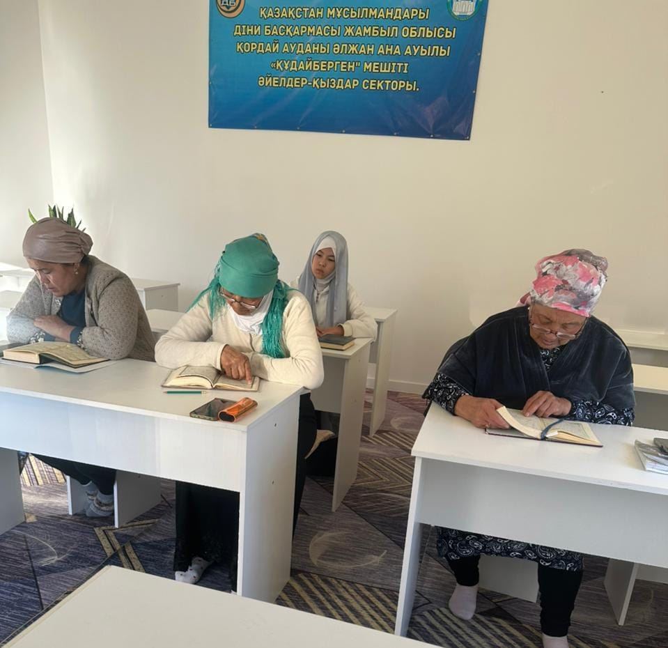 Аудан бойынша әйел-қыздар жамағатының ұстазы Эльмира Аманқожақызының ұйымдастыруымен қасиетті ай аясында Құран хатым оқу шаралары жүргізілуде. Бұл игі амал арқылы жамағат марқұмдардың рухына бағыштап Құран оқып, елдің амандығы, жұрттың тыныштығы, береке-бірлік үшін дұға жасауда.