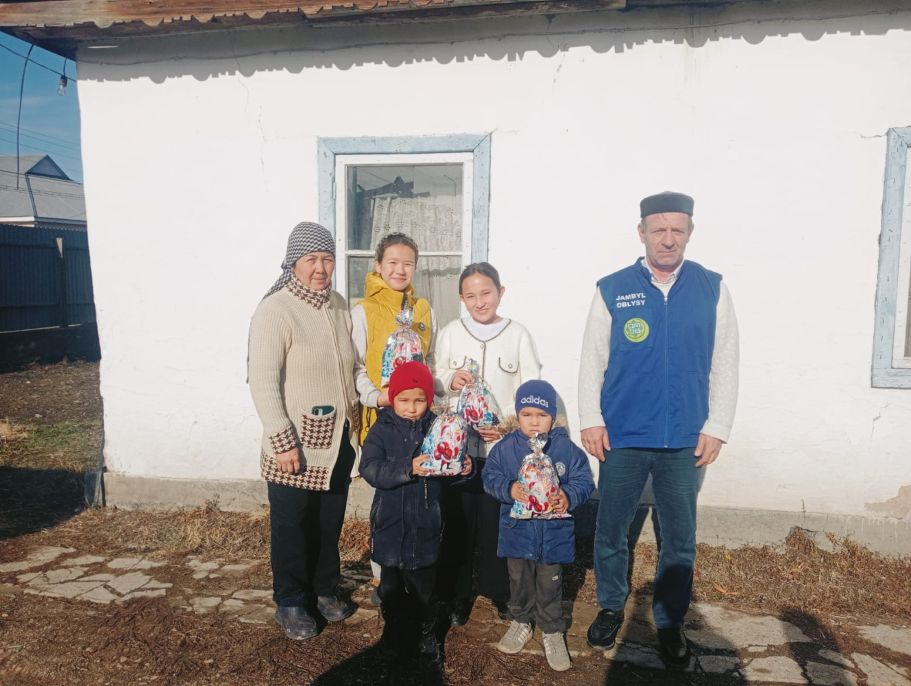 Шу ауданына қарасты “Төле би” мешітінде қайырымдылық шарасы ұйымдастырылды. Іс-шара барысында әлеуметтік жағдайы төмен үш отбасыға азық-түлік пен тұрмыстық қажетті заттар жеткізілді.