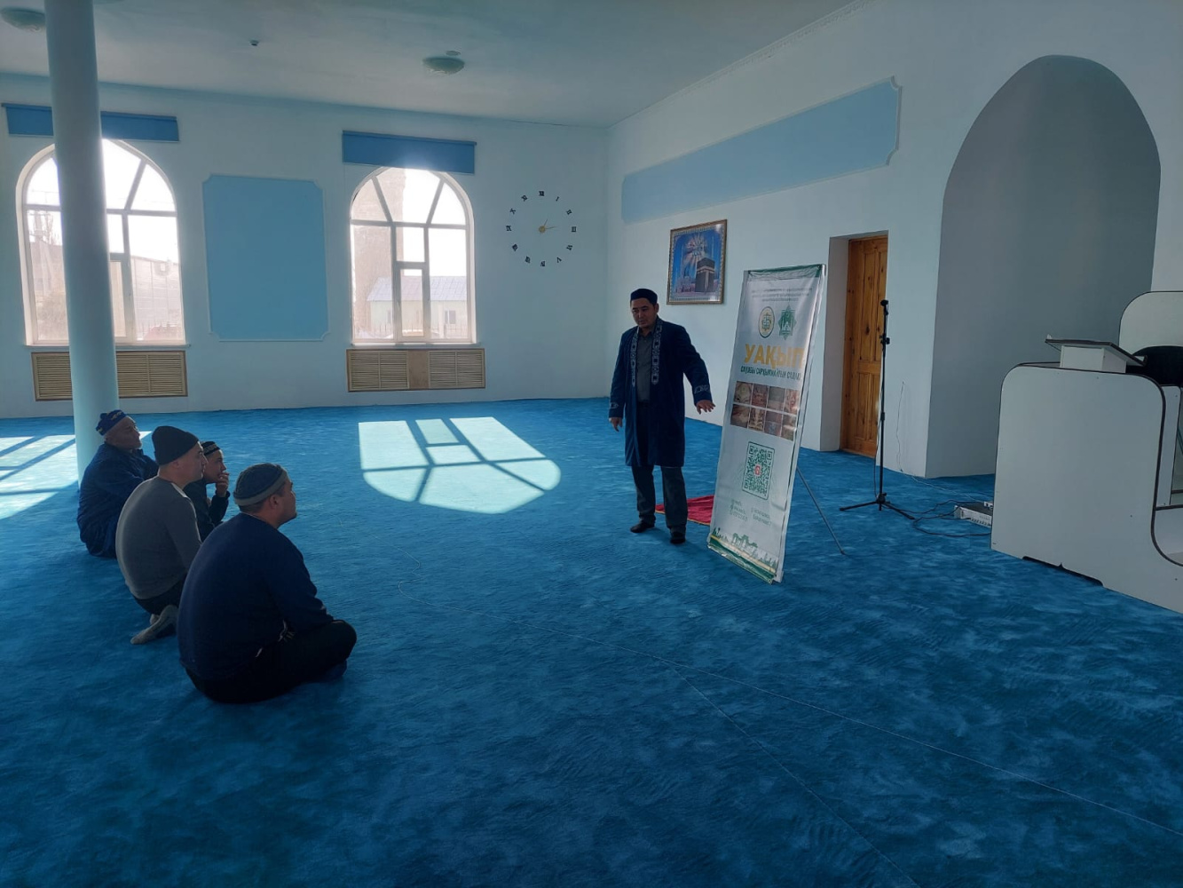 Мойынқұм ауданының орталық «Мойынқұм» мешітінде жамағатқа арналған тағылымды уағыз ұйымдастырылды. Ауданның бас имамы Көшкімбай Ержан уақыптың маңызы мен оның исламдағы орны жөнінде кеңінен насихат айтты.