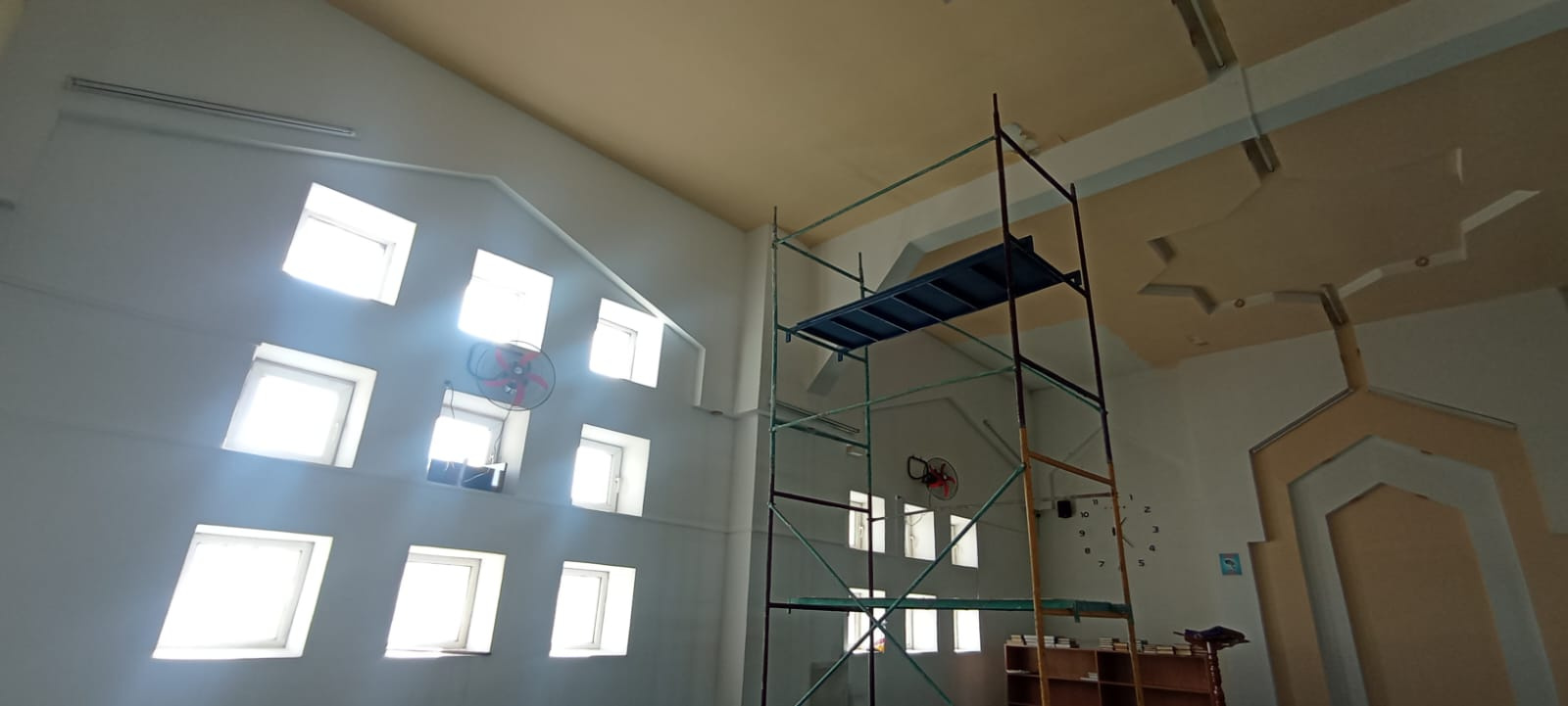 Атап айтсақ, мешіт ауласы ретке келтіріліп, мешіт іші және дәретханаларға жөндеу мен әрлеу жұмыстары жүргізілуде.