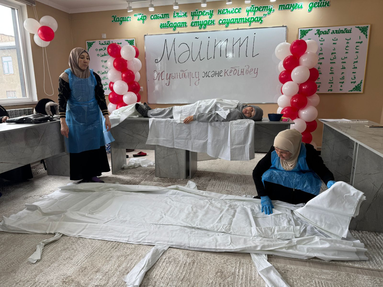 «Жәми» мешіттің әйел-қыздар секторының бастамасымен шариғат талаптарына сай «Мәйітті жуындыру және кебіндеу» тақырыбында арнайы семинар өтті.