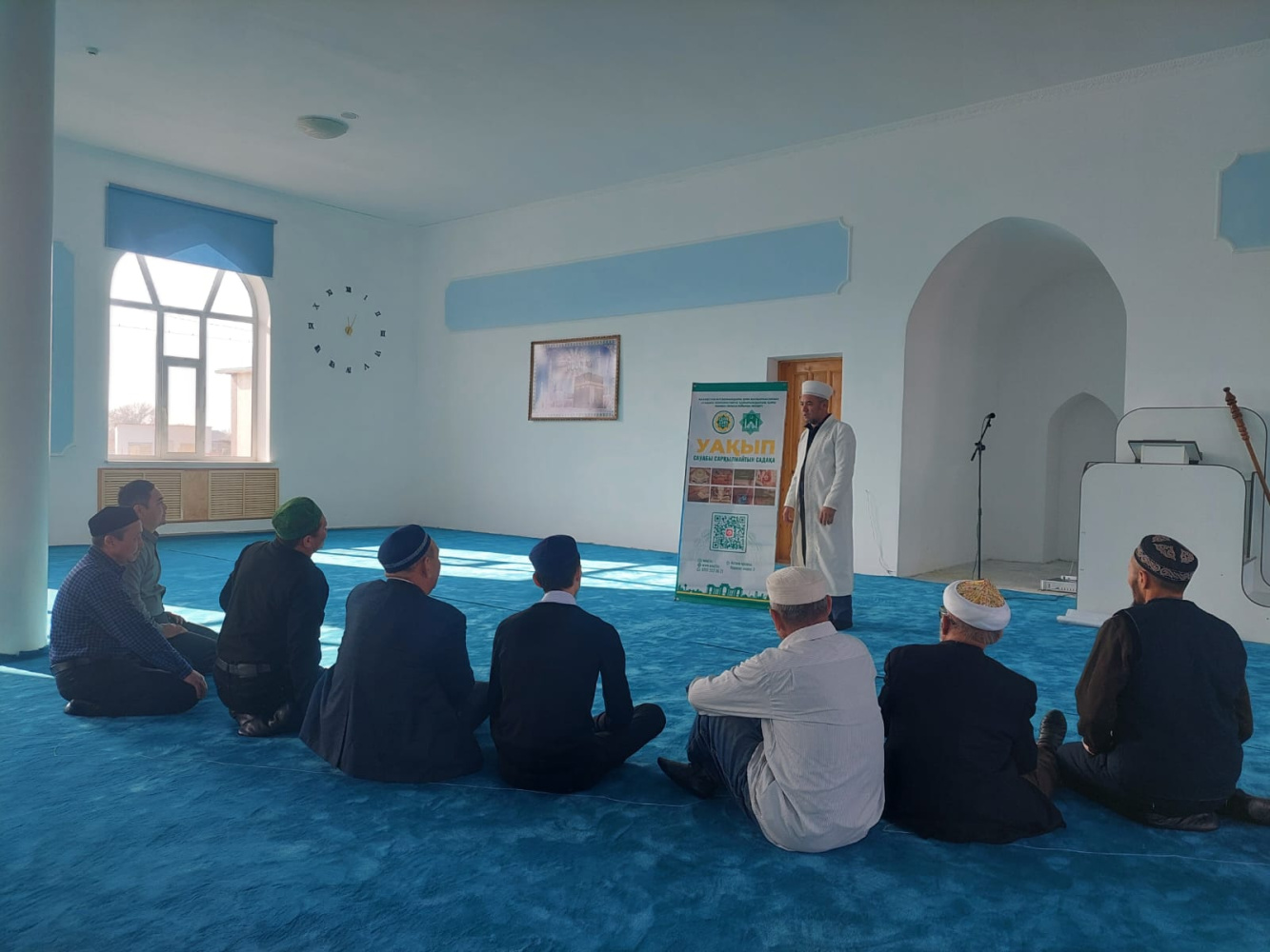 Биназар ауылдық мешітінің имамы жиналған жамағатқа исламдағы уақып ұғымының мәні, түрлері мен мақсаты туралы кеңінен түсіндірді.