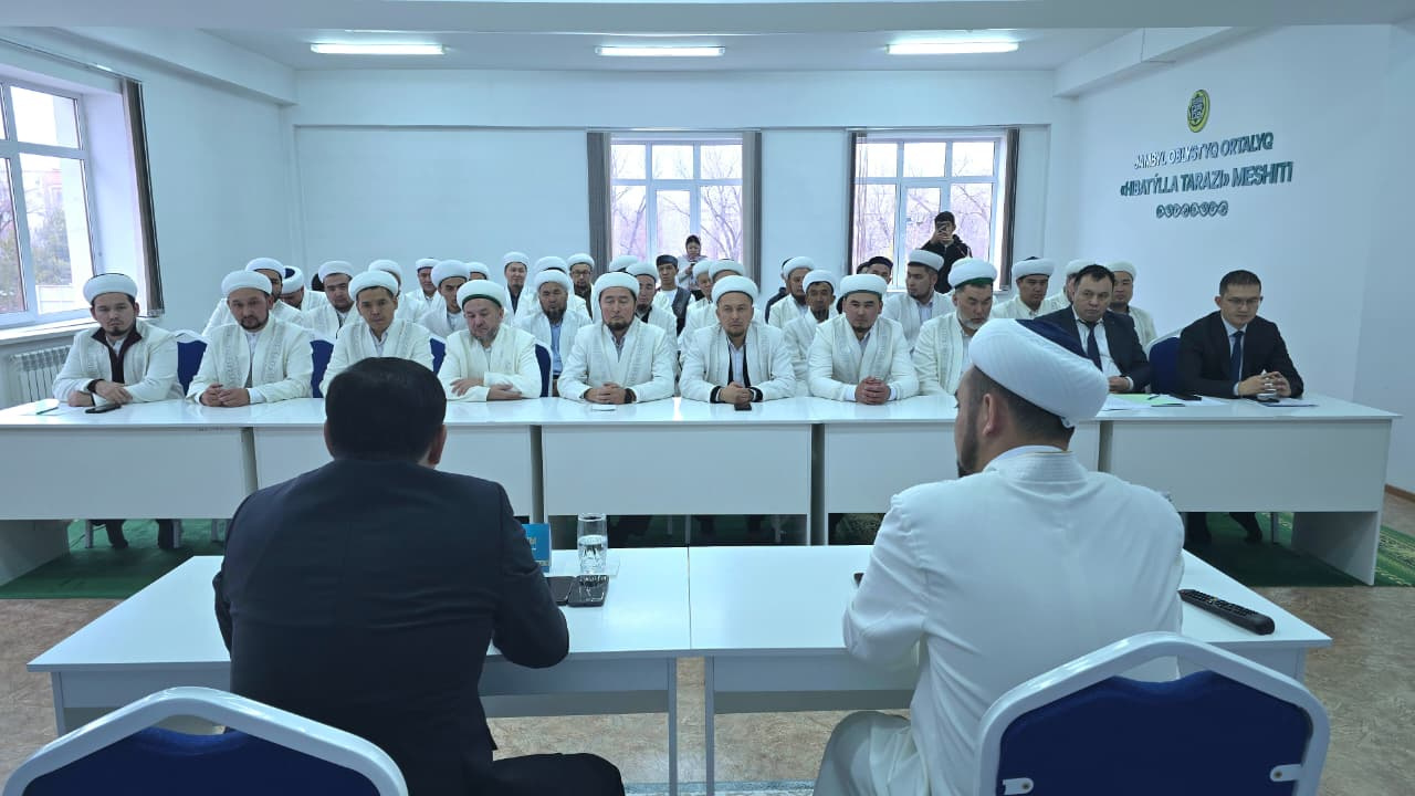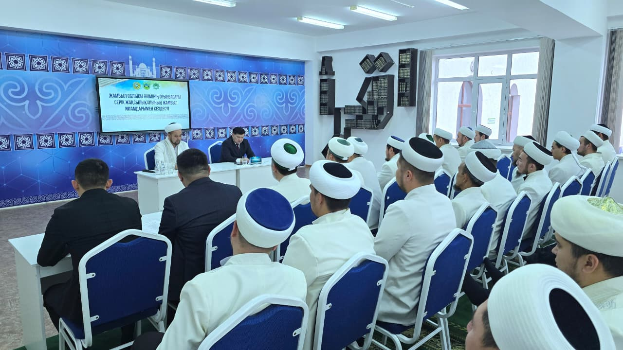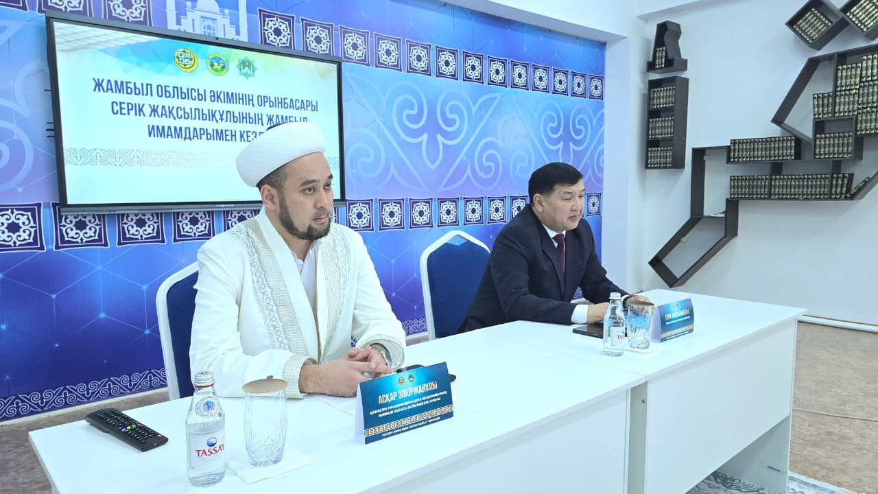 Кездесуде ҚМДБ-ның Жамбыл облысы бойынша бас имамы Асқар Зәкіржанұлы да сөз алып, елге, жерге қызмет етудің мәні мен заң талаптарын сақтау – әрбір азаматтың, соның ішінде дін қызметкерлерінің басты міндеті екенін атап өтті. Ол көршілес мемлекеттердегі түрлі жағдайларды мысалға келтіре отырып, Қазақстандағы татулық пен тұрақтылықты сақтау – ортақ жауапкершілік екенін тілге тиек етті.