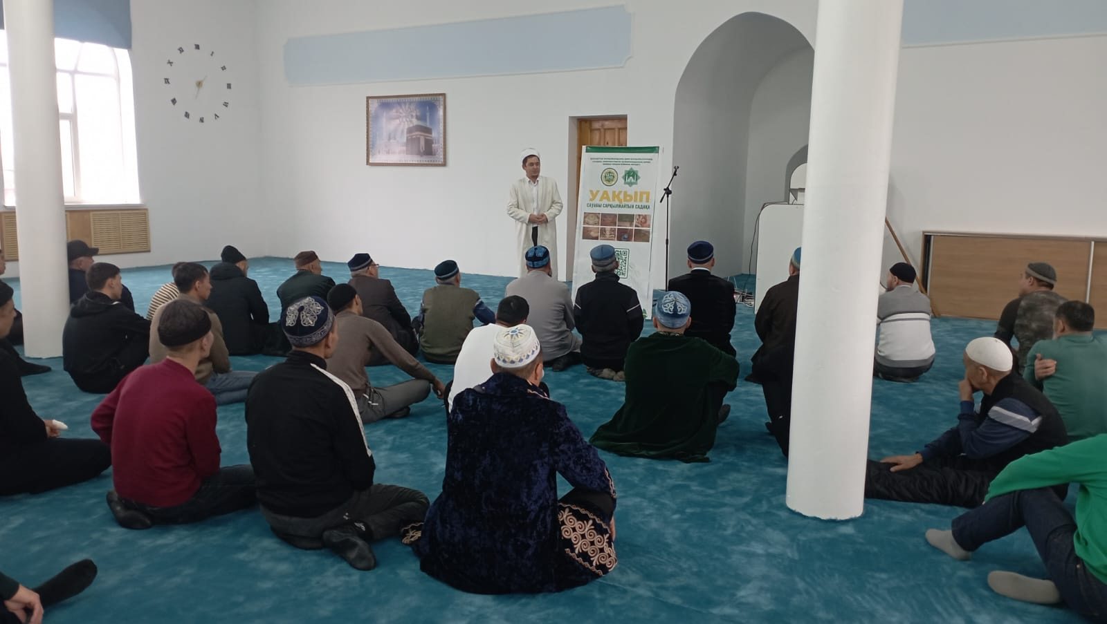 Мойынқұм ауданының бас имамы Ержан Көшкімбай қасиетті жұма намазында жамағатқа «Уақып – сарқылмайтын садақа» тақырыбында уағыз жүргізді.