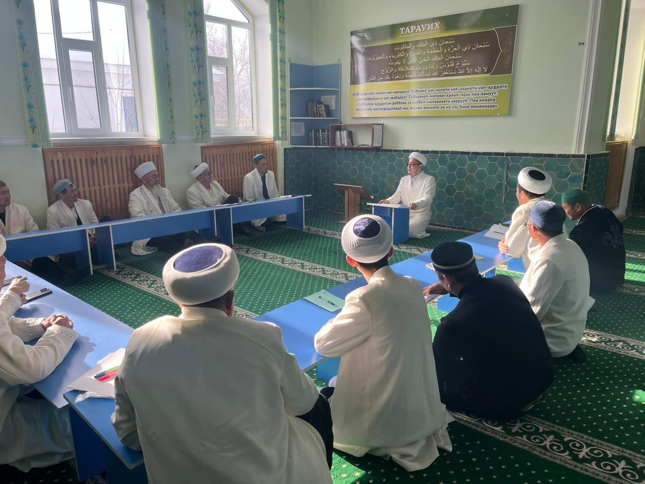 Жиын барысында Имамдардың біліктілігі мен мешіт жанындағы діни сауат ашу курстарының маңыздылығы, күнделікті бесін және ақшам намаздарындағы уағыз айту жұмыстары, рухани, қайырымдылық шаралары, мешіт имамдарының әдептілігі мен тәртібі, т.б.с. мәселелерді кеңінен түсіндіріп, уағыз айтқанда, жаназа және басқада жиындарға барғанда имамның киім үлгісіне, тұр-әлпетіне, жалпы тазалыққа мән беру керектігін және қоғамдағы рухани тәрбие, салт-дәстүрді сақтаудың мәні және жастарға дұрыс бағыт-бағдар беру мәселелері төңірегінде пікір алмасты.