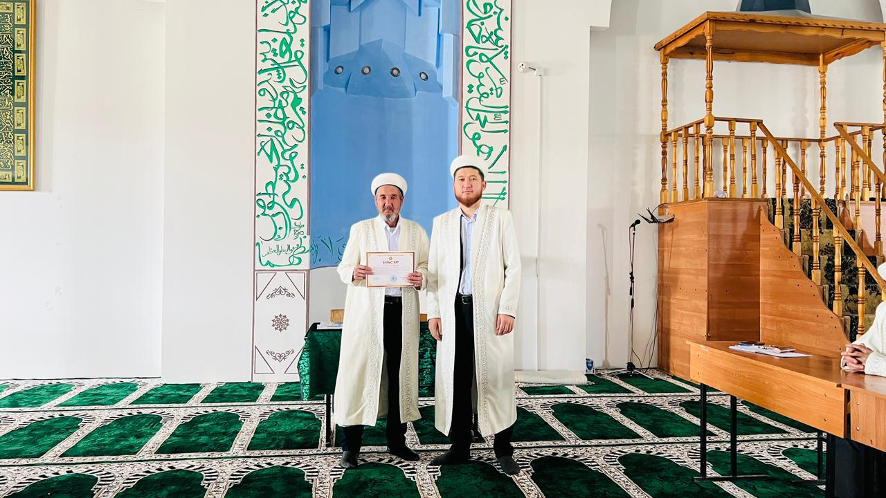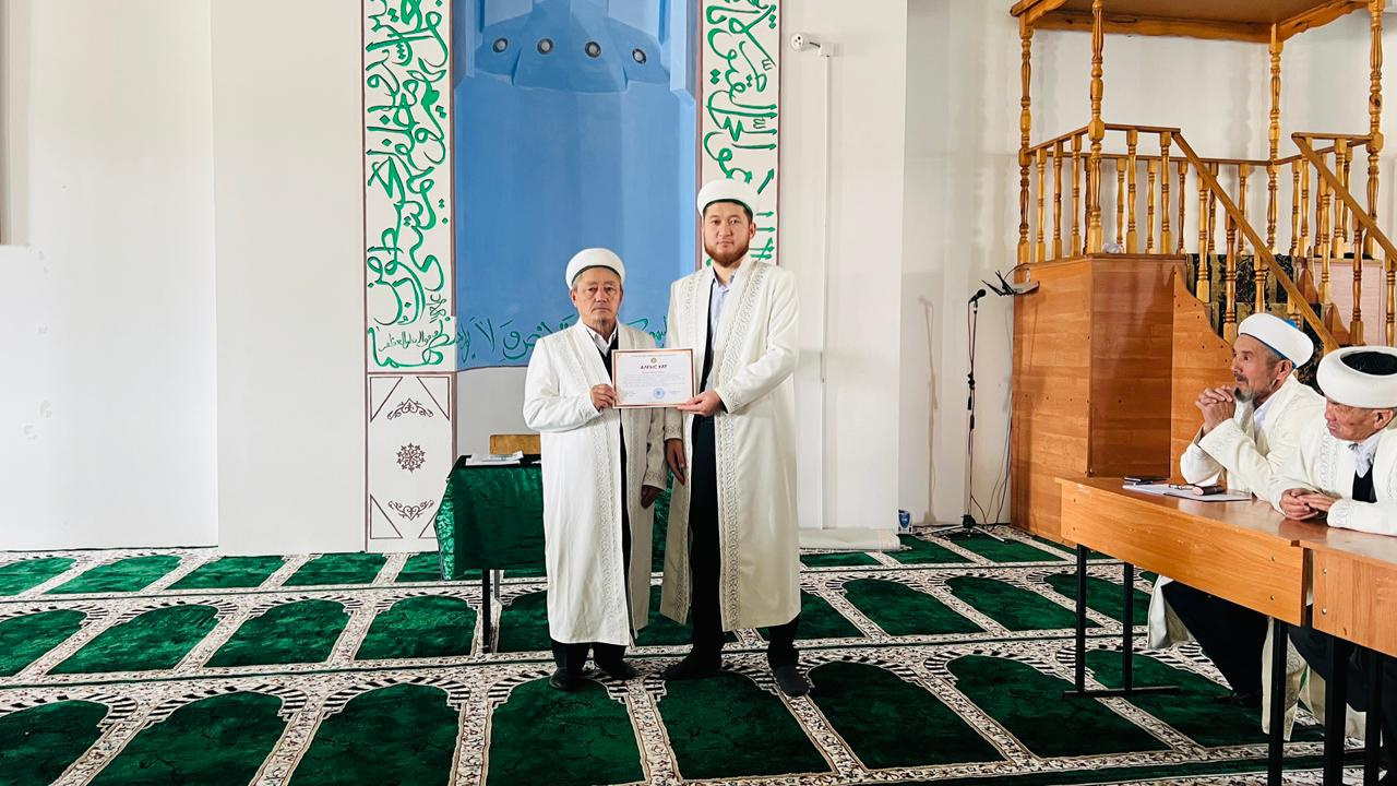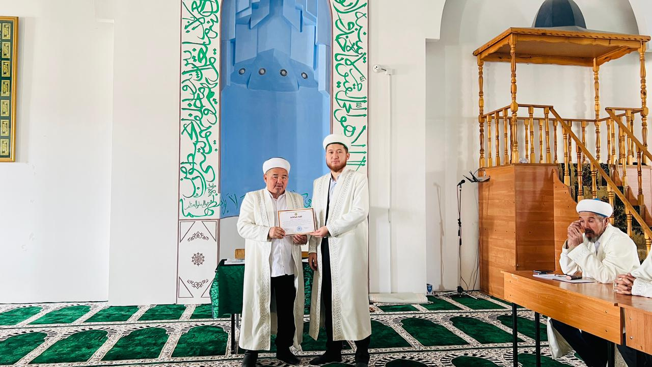Жамбыл облысы Тұрар Рысқұлов аудандық «Сұлтан» орталық мешітінің бас имамы Қуаныш Досымжанұлы 2025 жылы асыл дінімізге аянбай қызмет етіп, көзге түскен 4 ауыл имамын Бас Мүфтидің алғыс хатымен марапаттады.