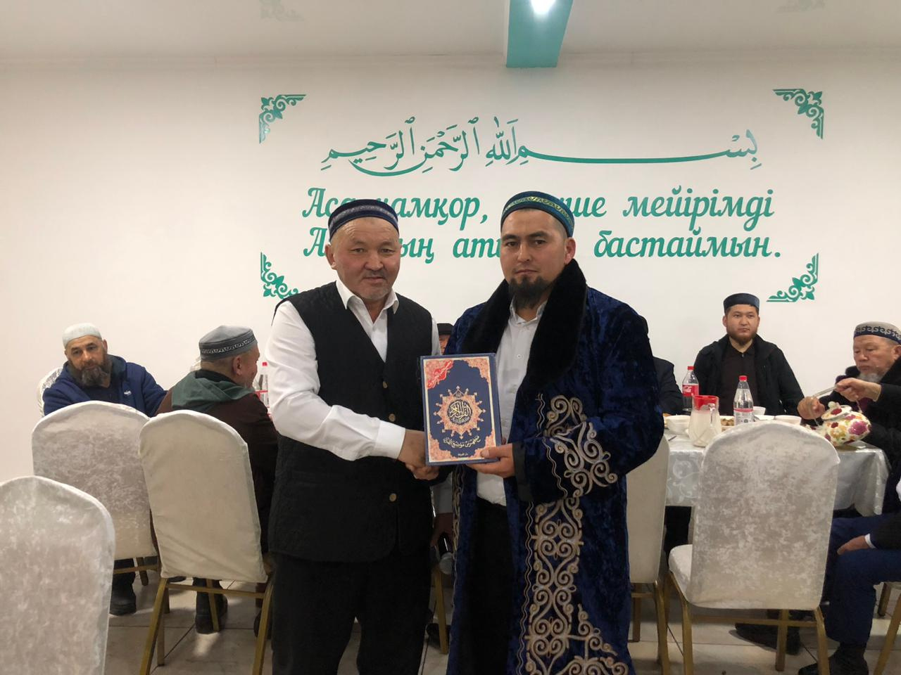 Мешіт жамағаты қызмет бабымен өзге өңірге ауысып жатқан ауданның бас имамы Азамат Берікұлын құрметпен шығарып салды. Жамағат атынан алғыс білдіріліп, иығына шапан жабылып елге сіңірген еңбегі ерекше атап өтілді.