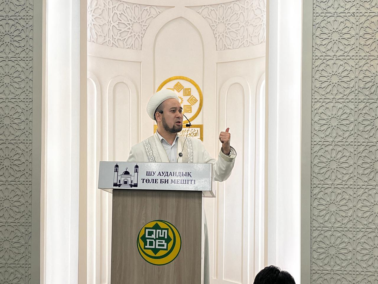 ҚМДБ-ның Жамбыл облысы бойынша бас имамы Асқар Зәкіржанұлы Шу ауданына қарасты «Төле би» мешітінде «Бас имам сағатын» өткізді.