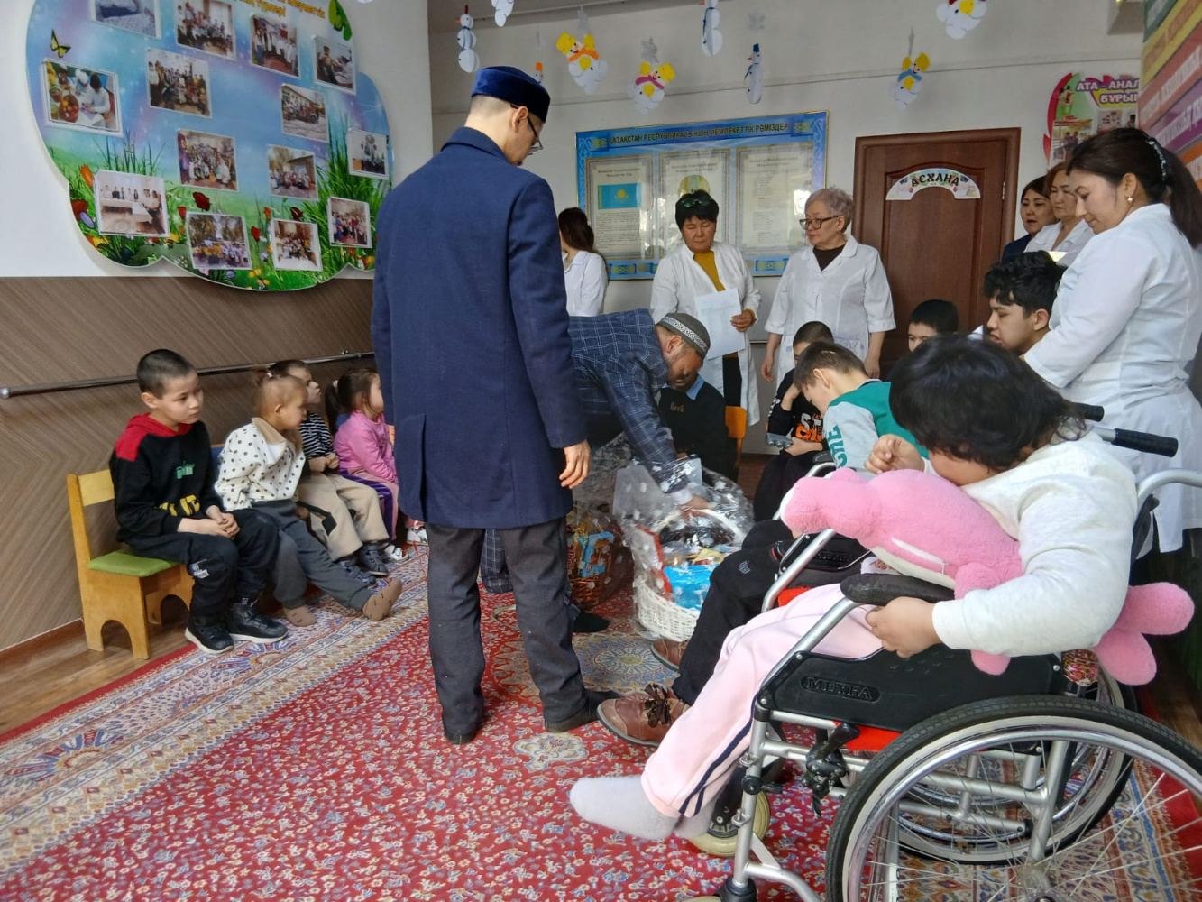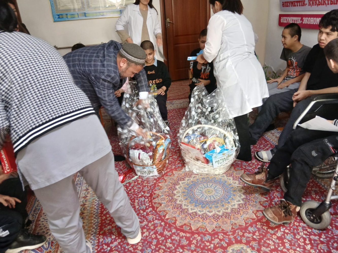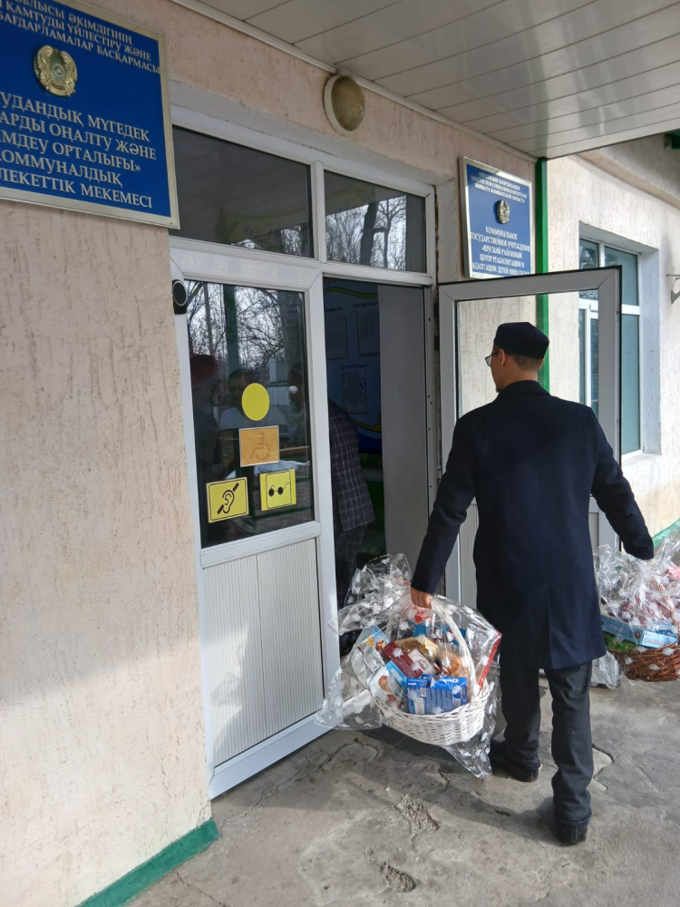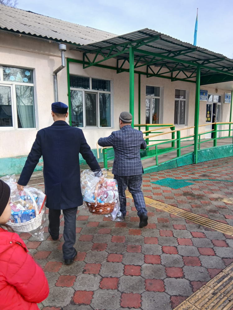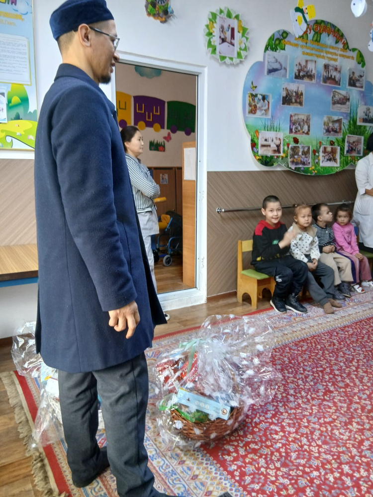Шу аудандық «Жәми» мешітінің бас имамы Алмас Кенжемолдаевтың ұйымдастыруымен Төле би ауылында орналасқан мүмкіндігі шектеулі балаларды қарау орталығына арнайы бару жүзеге асты.