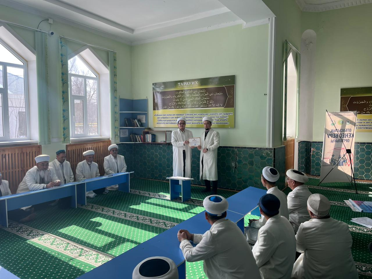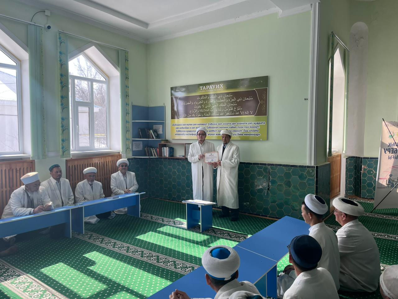 Бас имам Теріс ауылының имамы Мұстафаев Бауыржан, Қызыларық ауылының молдасы Абилдаев Жайнар және Қарабастау ауылының имамы Бахтыбеков Қуанышты Бас мүфтидің алғыс хатымен марапаттады.