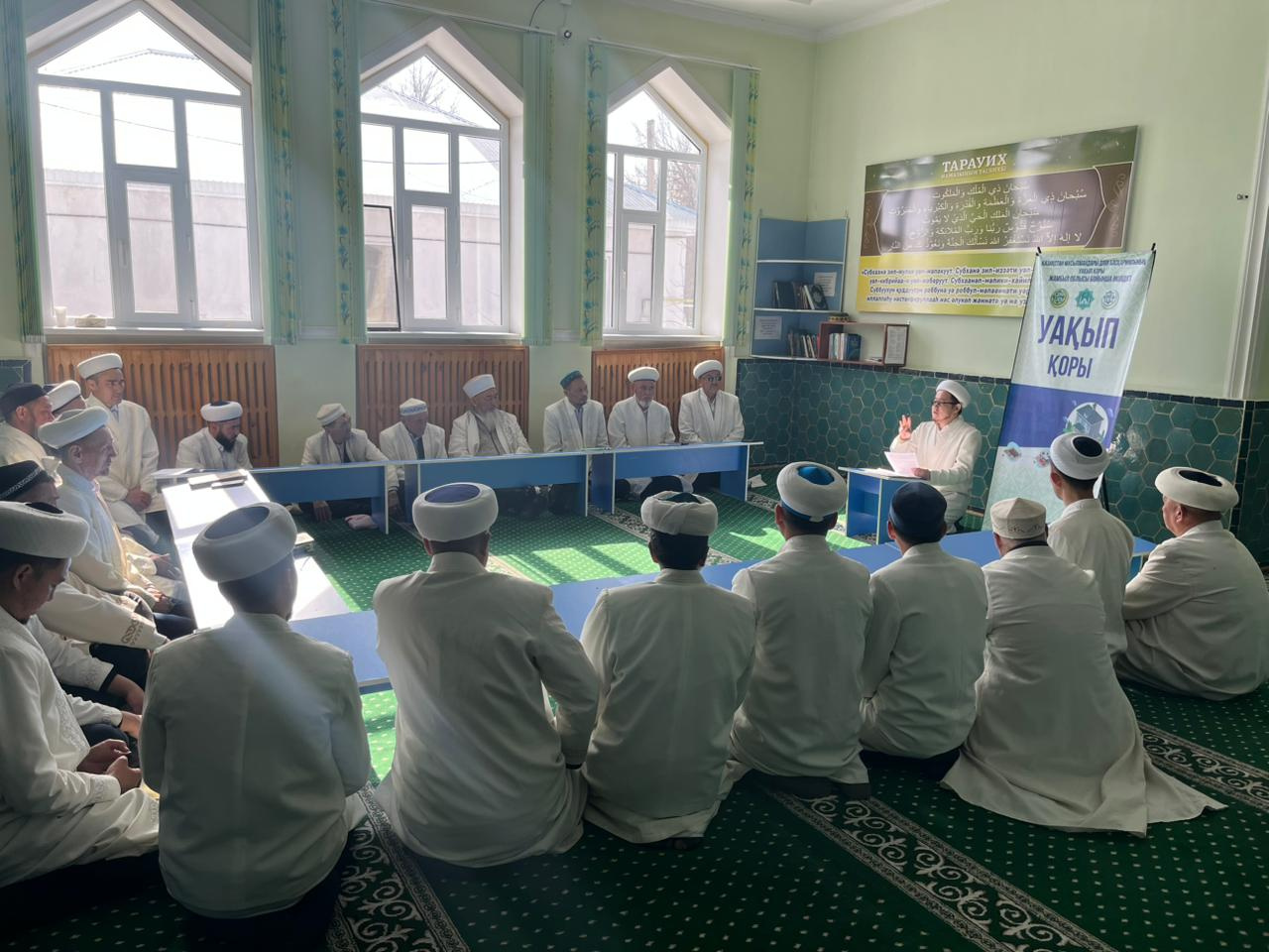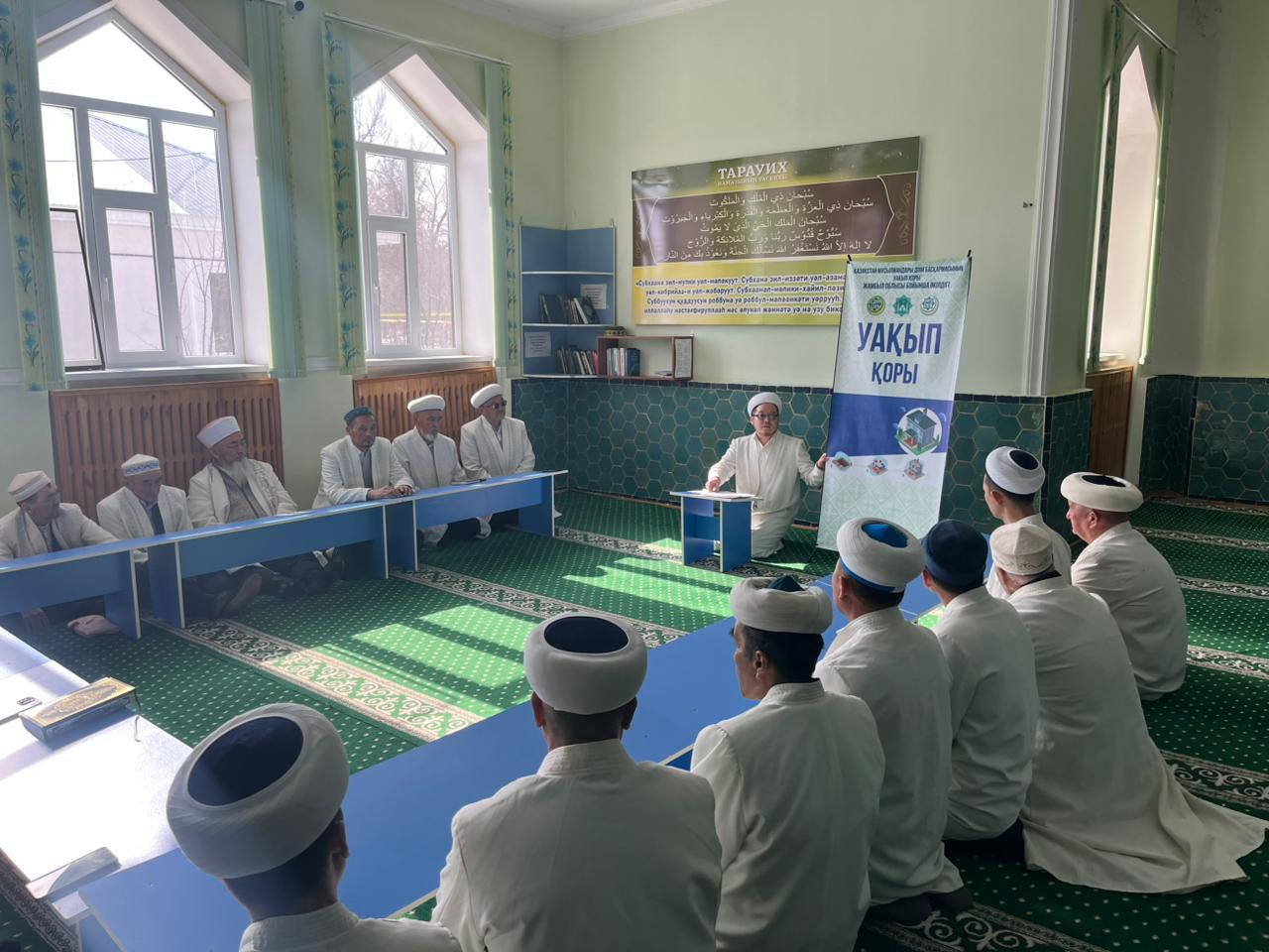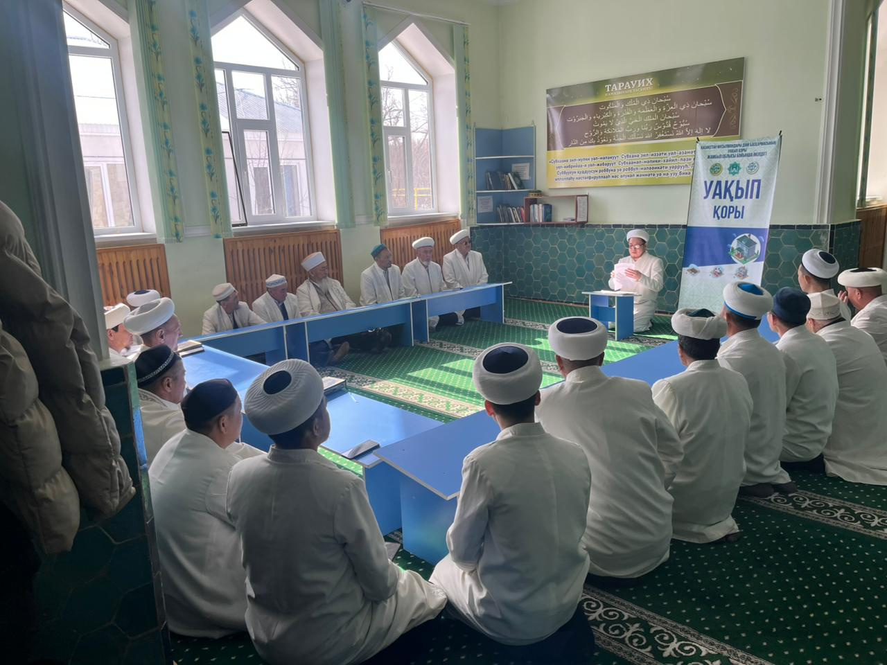 Жуалы ауданы, Бауыржан Момышұлы ауылдық «Толымбайтегі Зиябек» орталық мешітінде аудан бас имамы Есет Тұрдыбайұлының бастамасымен өткен имамдар жиынында «Уақып қоры»атты семинар өткізді.