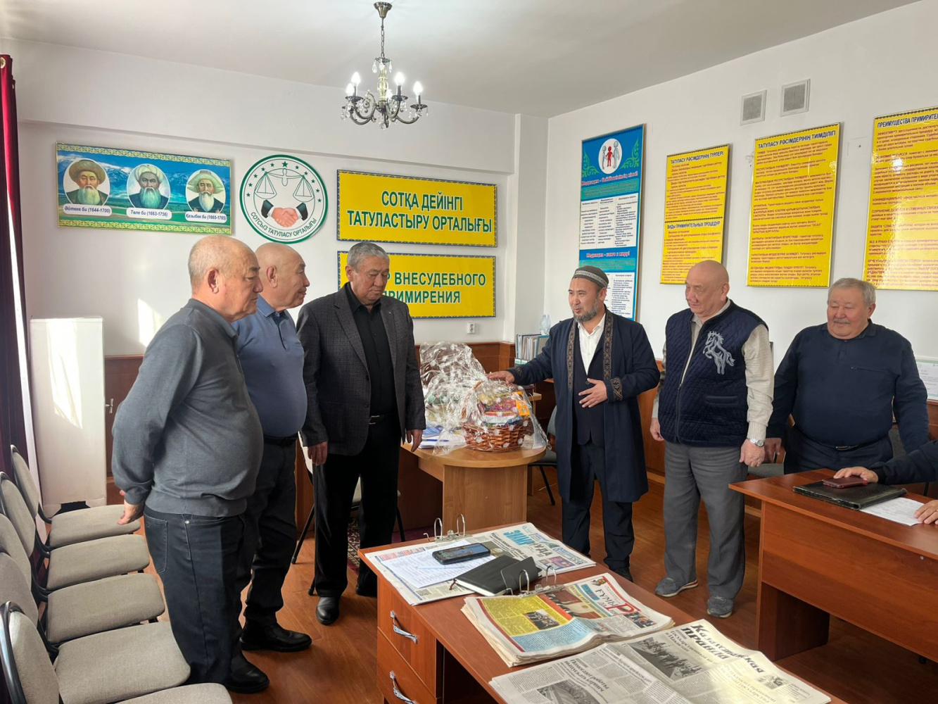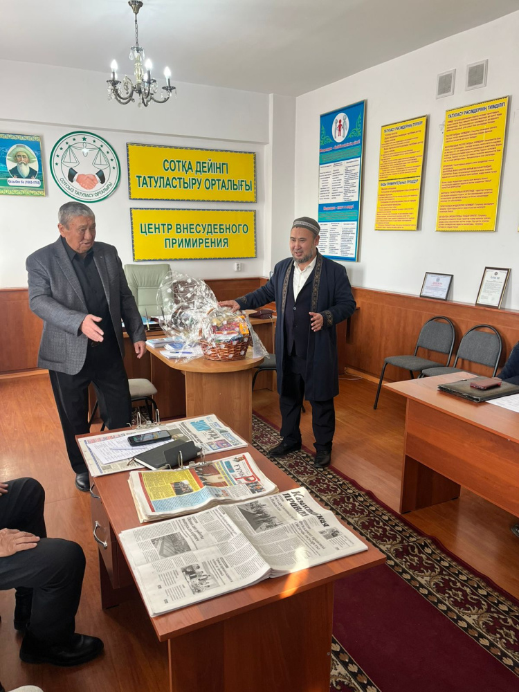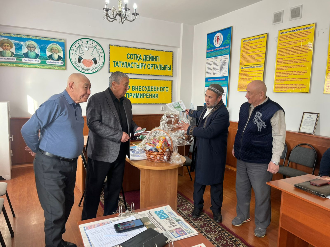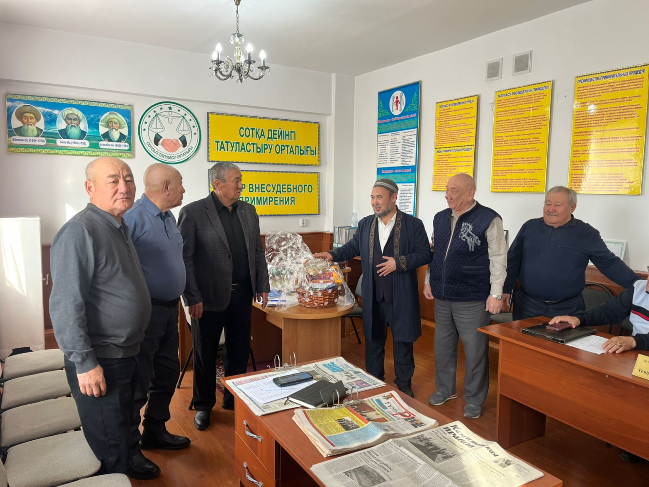 Қасиетті Рамазан айының құрметіне орай Шу аудандық «Жәми» мешітінің бас имамы Алмас Кенжемолдаев ауылдағы сотқа дейінгі татуластыру орталығына арнайы барып, ақсақалдар алқасын Рамазан айымен құттықтады.