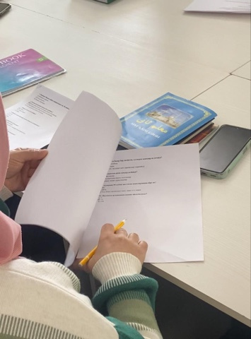 Бүгін “Меркі ата” мешітінің ұстазы Медина Тилеубердиева, шәкірттеріне ақида сабағынан, оқу-білім деңгейін анықтау мақсатында ақида пәнінен тест сұрақтары беріліп, арнайы емтихан ұйымдастырды. Бұл сынақ шәкірттердің діни білімін пысықтап, сенім негіздері бойынша түсініктерін бағалауға бағытталды.