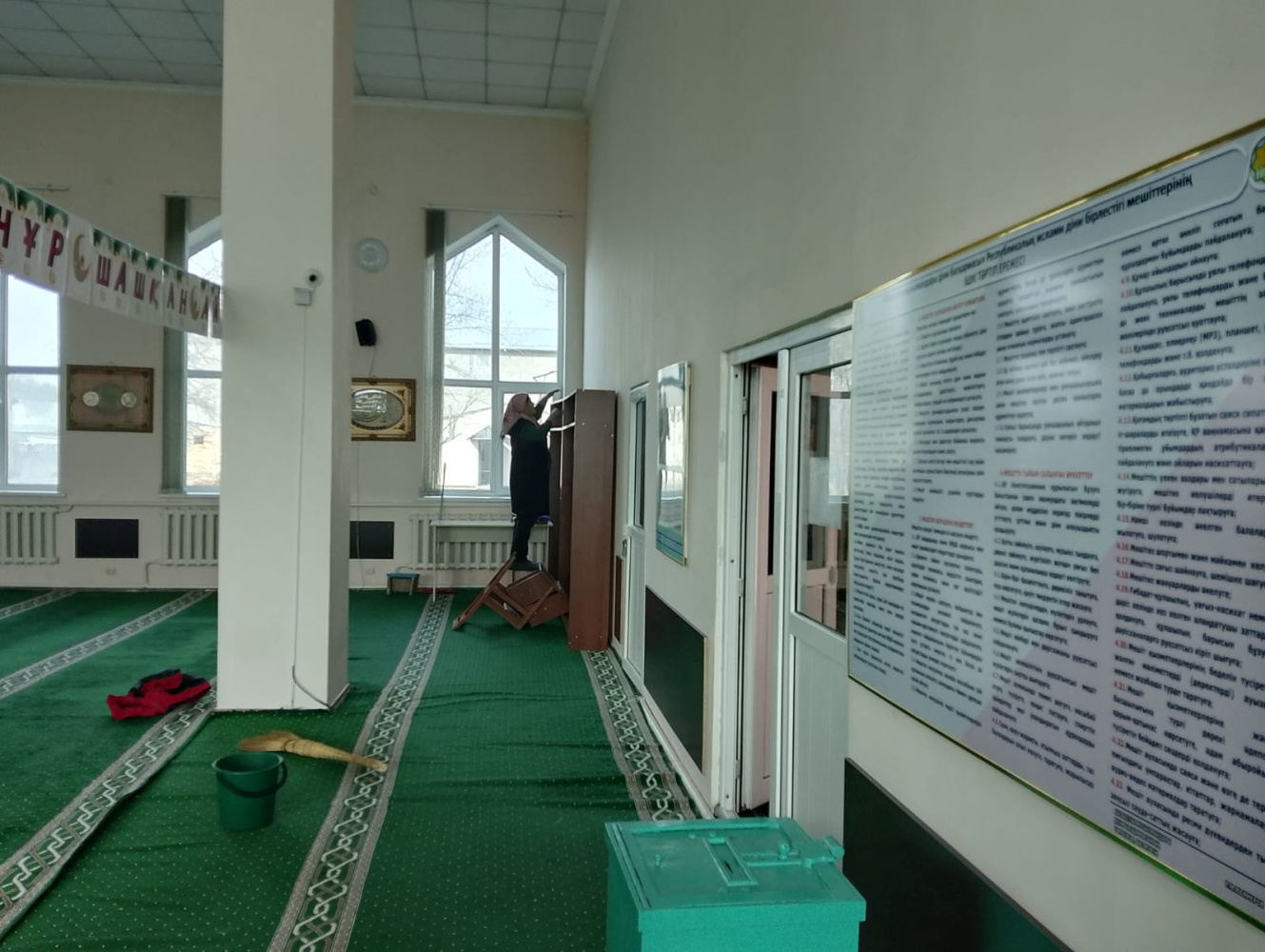 Қасиетті Рамазан айына дайындық ретінде мешіт іші мен сырты тазаланып, жамағатқа жағдай жасалды. Сонымен қатар, дауыс зорайтқыштар мен колонкаларды бір тексеріп, істен шыққандарын ауыстырып, дыбыс дұрыс шығу үшін жұмыстар атқарылды