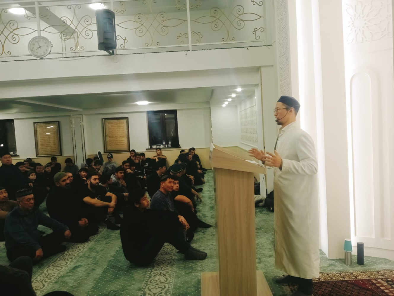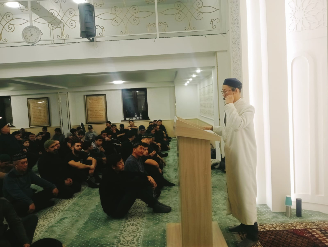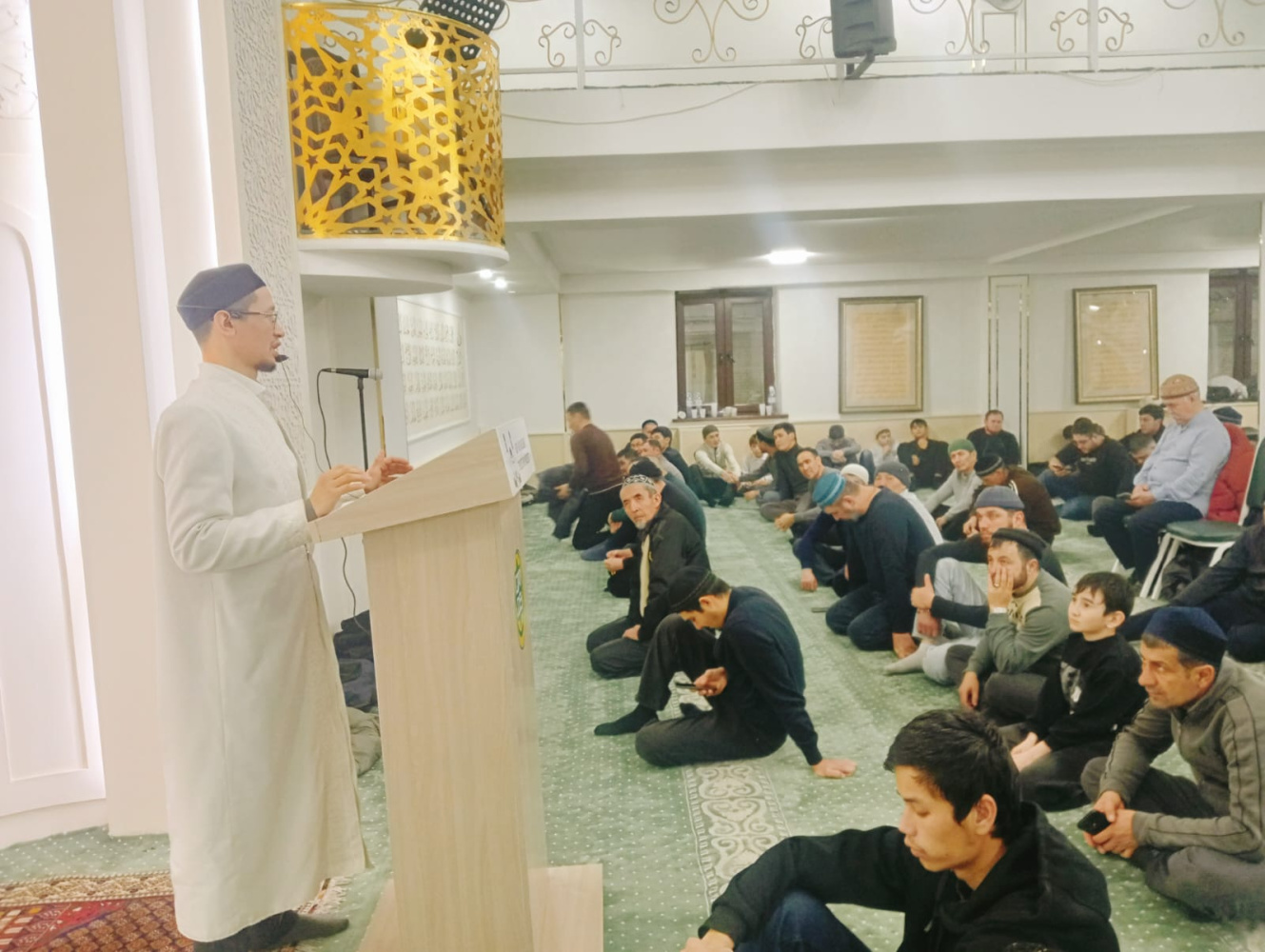 Тарауық намазы барысында ниет пен ықылас тақырыптарында кеңінен уағыз айтып, әрбір құлшылықтың қабыл болуы шынайы ниетке байланысты екенін атап өтті. Амалдың көптігі емес, ықыластың тазалығы маңызды екендігін түсіндіріп, жүрек тәрбиесі мен имандылықтың мәніне тоқталды.