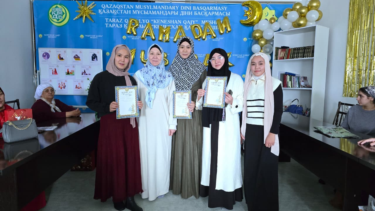 Қасиетті Рамазан айының құрметіне орай Тараз қаласындағы «Кеңесхан қажы» мешітінде ҚМДБ-ның Жамбыл облысы бойынша әйел-қыздар секторының мешіт ұстазы Зейнеп Үсенованың ұйымдастыруымен «Рамазан – береке мен сауап айы» атты жамағат арасында сайыс өтті.