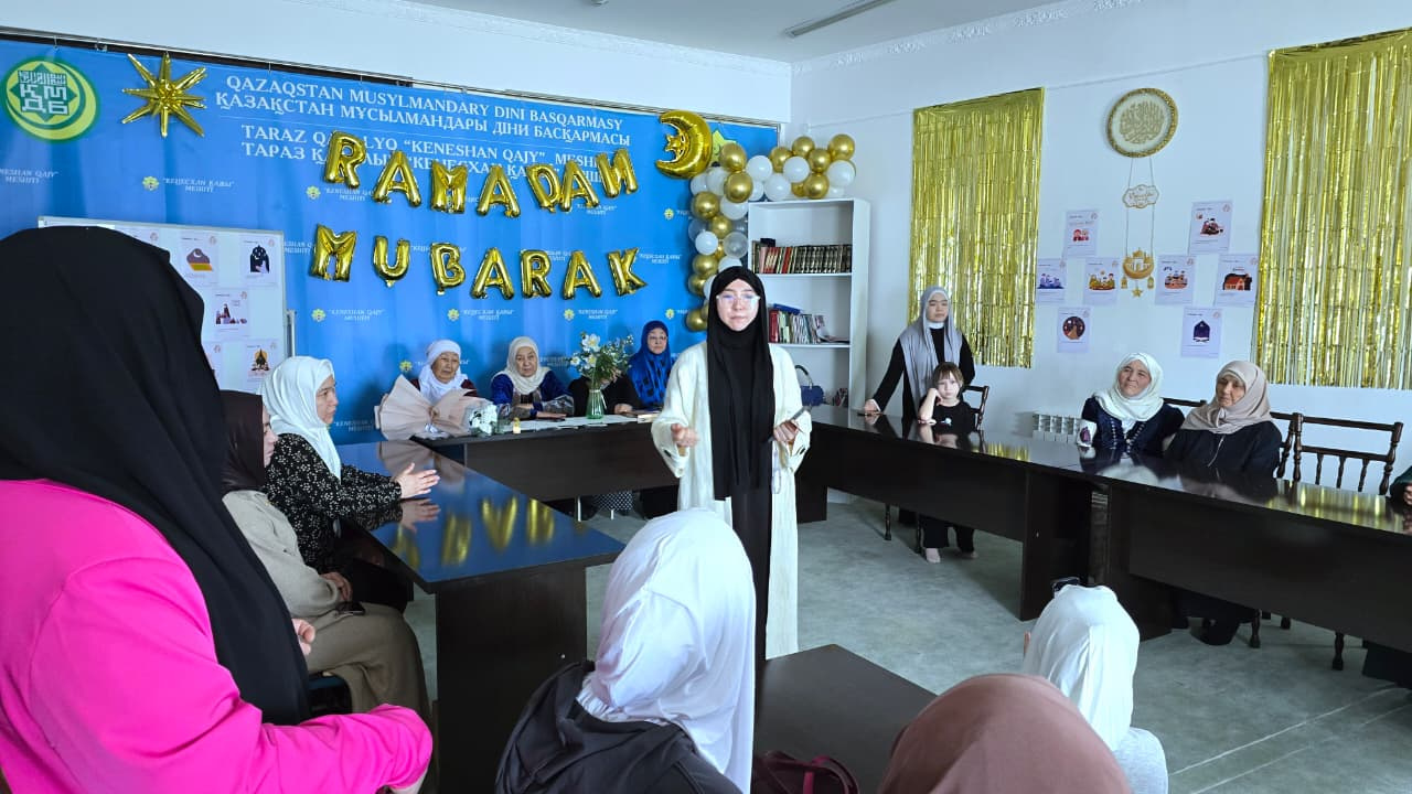 Тараз қаласындағы «Кеңесхан қажы» мешітінде ҚМДБ-ның Жамбыл облысы бойынша әйел-қыздар секторының мешіт ұстазы Зейнеп Үсенованың ұйымдастыруымен жамағатқа Рамазан айының артықшылықтары мен рухани маңызы жайында насихат айтылды.
