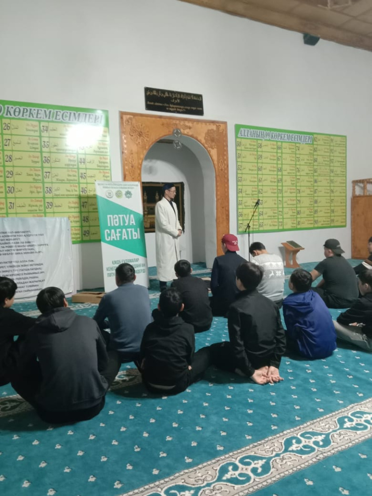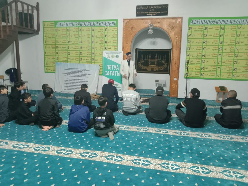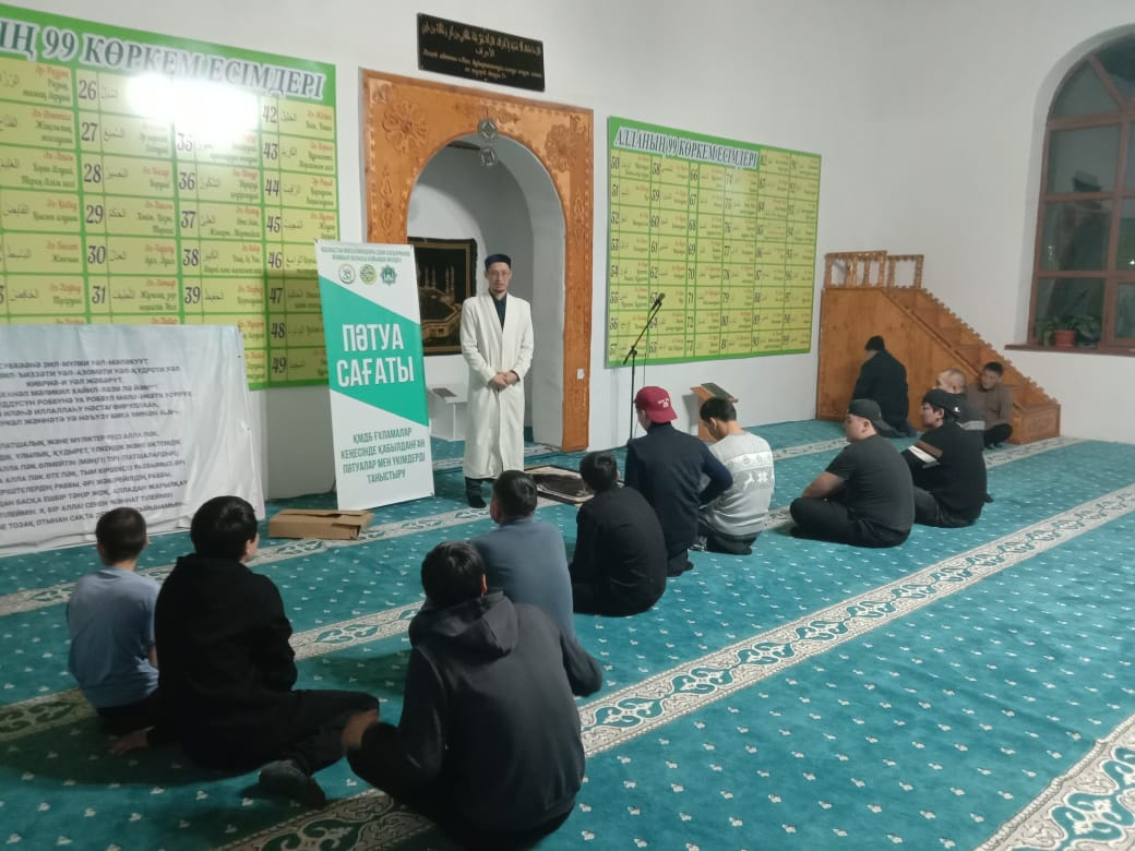 Шу ауданы “Жәми” мешітінің ұстазы Ерғазы Ақпанов Көктөбе ауылының «Рақыш ата» мешітінде жамағатқа арналған пәтуа сағатын өткізді.
