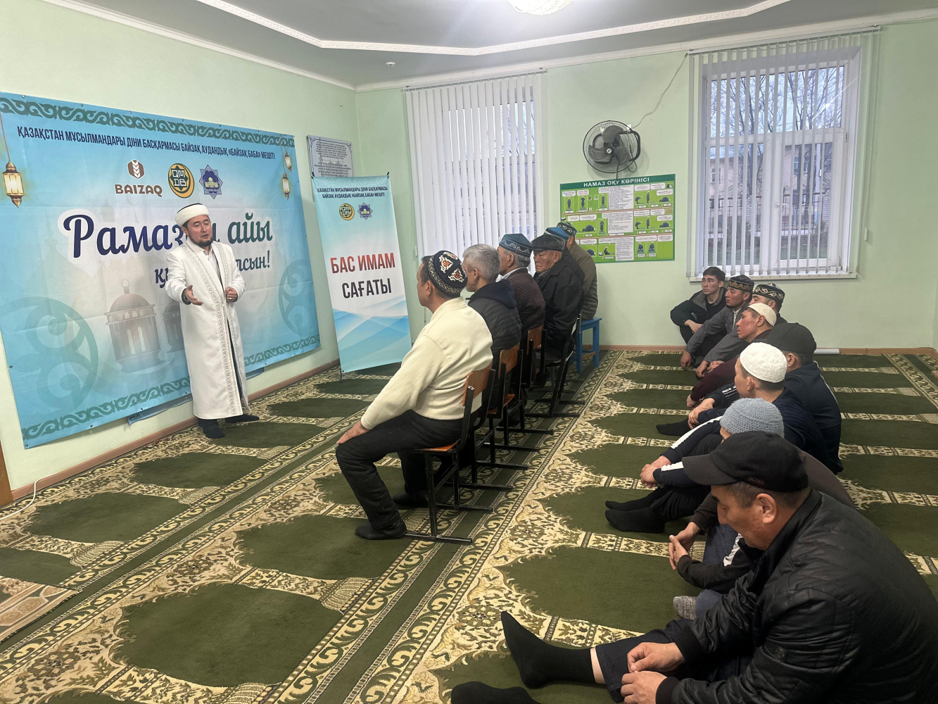 Рухани-танымдық басқосуда аудан бас имамы жамағатқа насихат айтып, қасиетті Рамазан айымен құттықтады. Сонымен қатар, ҚМДБ-ның төрт негізгі бағыты бойынша атқарылып жатқан жұмыстарын кеңінен таныстырып, алдағы жоспарларға тоқталды.
