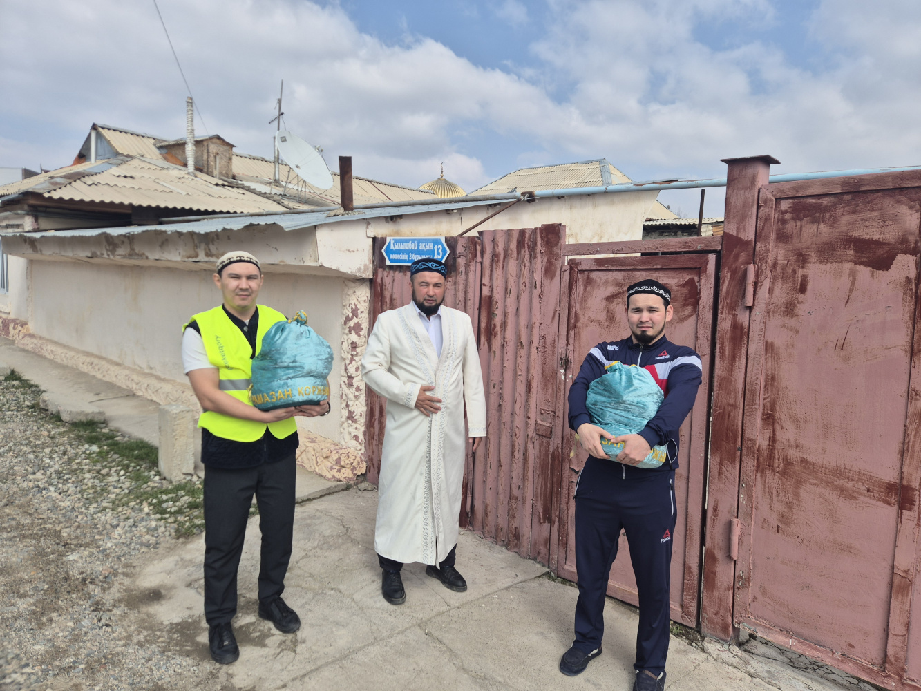 Тараз қаласының бас имамы Ержан Аманбаевтың ұйымдастыруымен мешіт айналасындағы тұрғындарға сый-құрмет көрсетіліп Рамазан қоржыны табысталды. Көршіні сыйлау пайғамбарлардың сүннетінен.