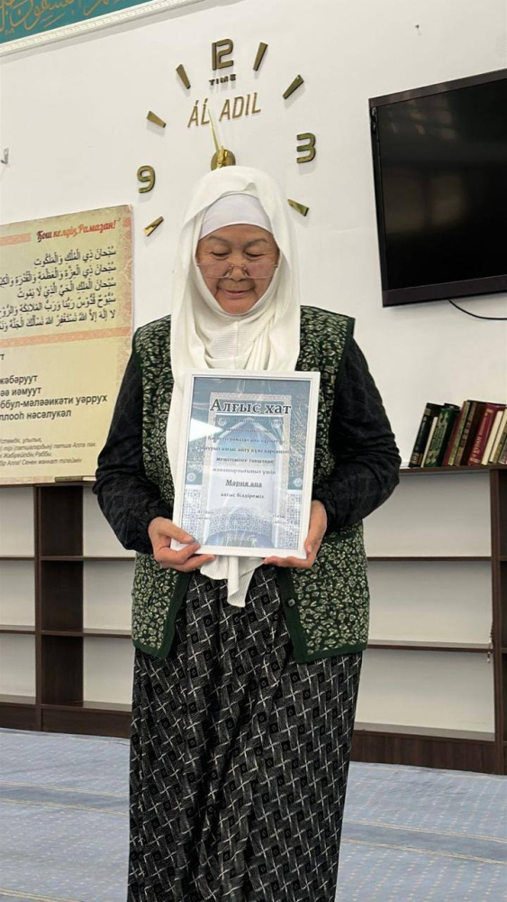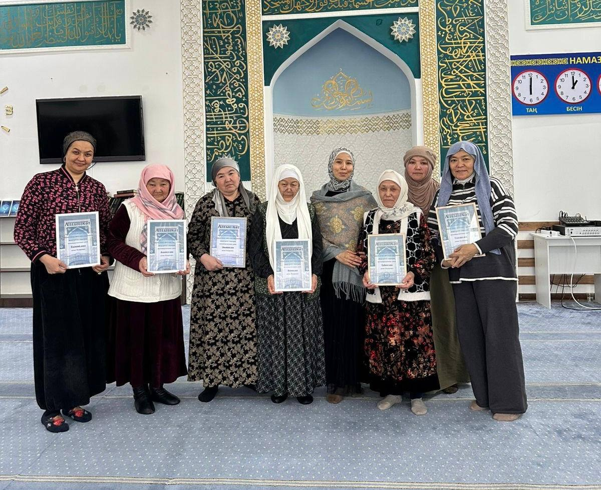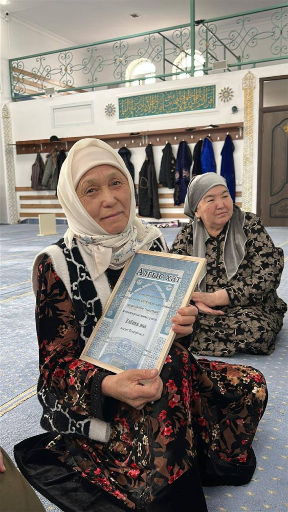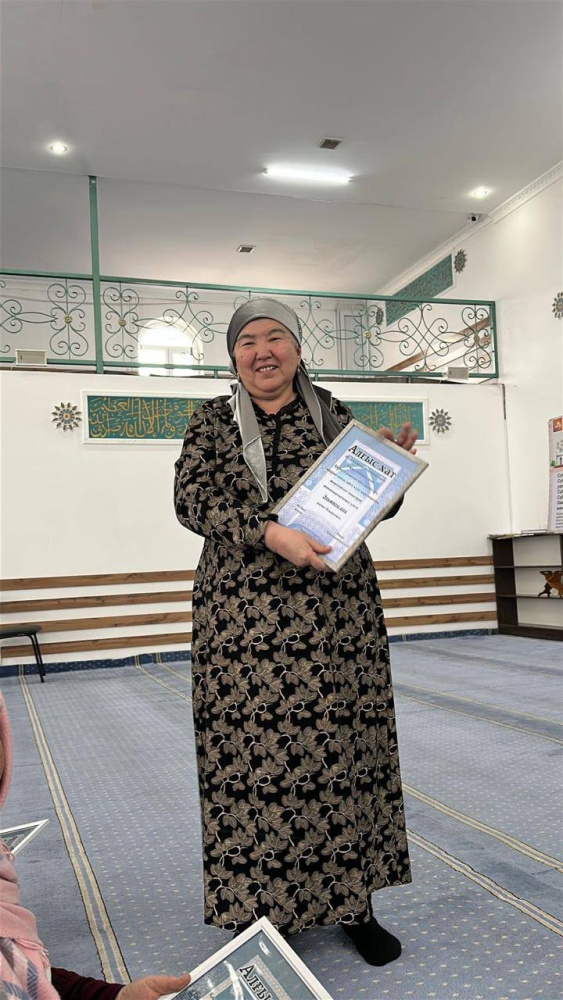 Мешітіміздің бас имамы шәкірт тәрбиесіне , мешіт жұмысына белсене атсалысып жүрген ардақты әжелерімізге ризашылығын білдіріп , алғыс хаттар табыстады. Бұл - мешіт өміріне тұрақты түрде келіп , жастарға өнеге болып жүрген әжелерімізге көрсетілген құрметтің белгісі болды.
