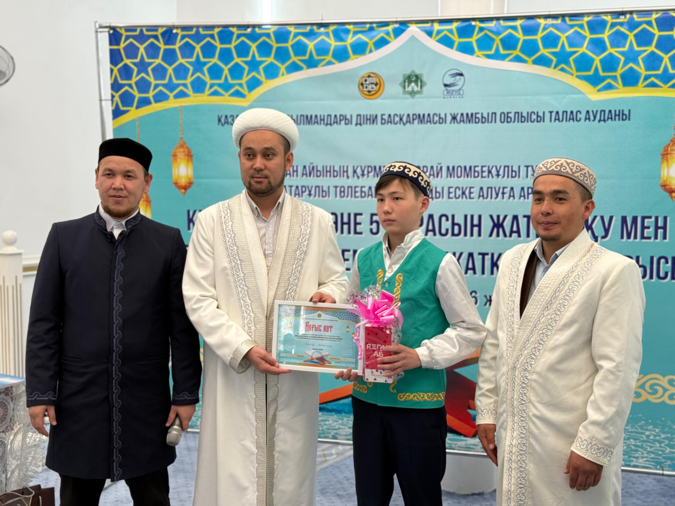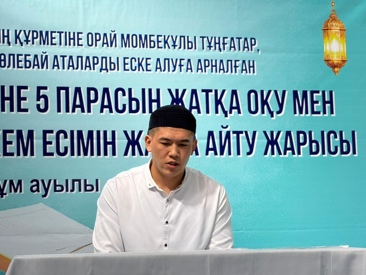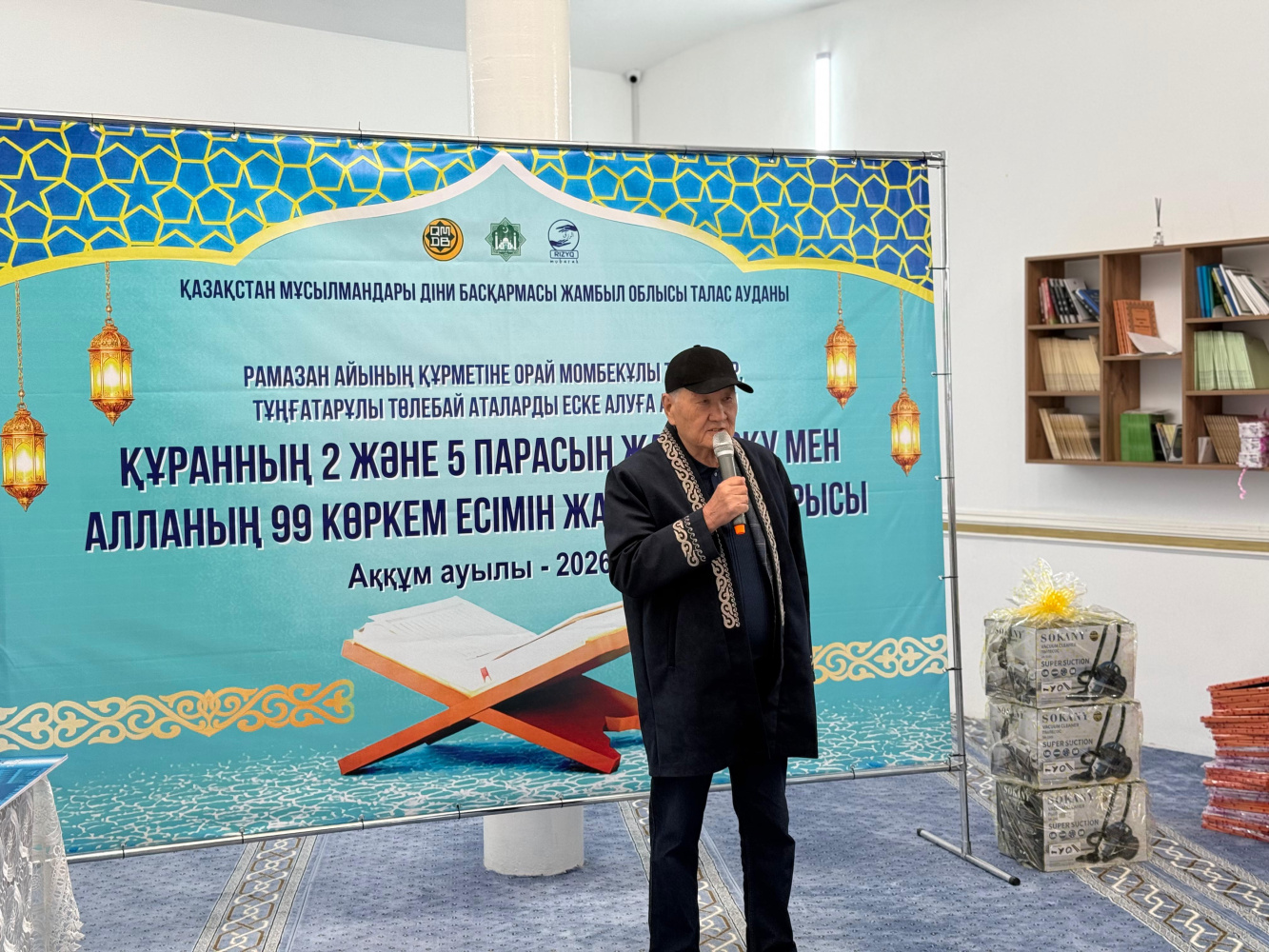 Қасиетті Рамазан айының құрметіне орай Жамбыл облысы, Талас ауданы, Аққұм ауылында тағылымы мол рухани іс-шара ұйымдастырылды. Атап айтқанда, Момбекұлы Тұңғатар және Тұңғатарұлы Төлебай аталарды еске алуға арналған Құран Кәрімді жатқа оқу және Алла тағаланың 99 көркем есімін мәнерлеп айту сайысы жоғары деңгейде өтті.
