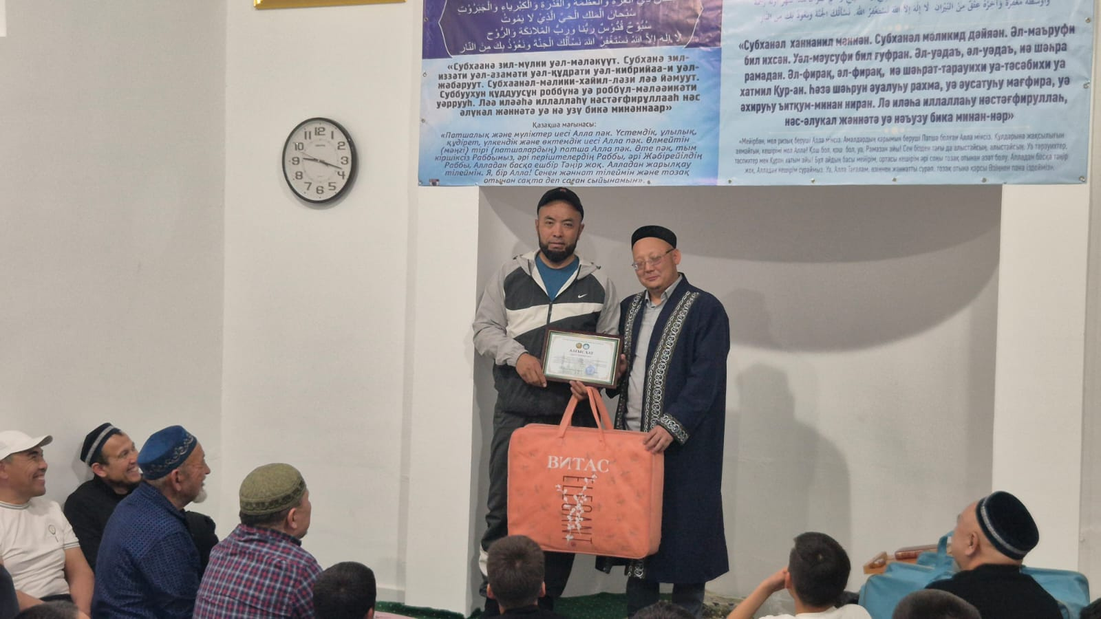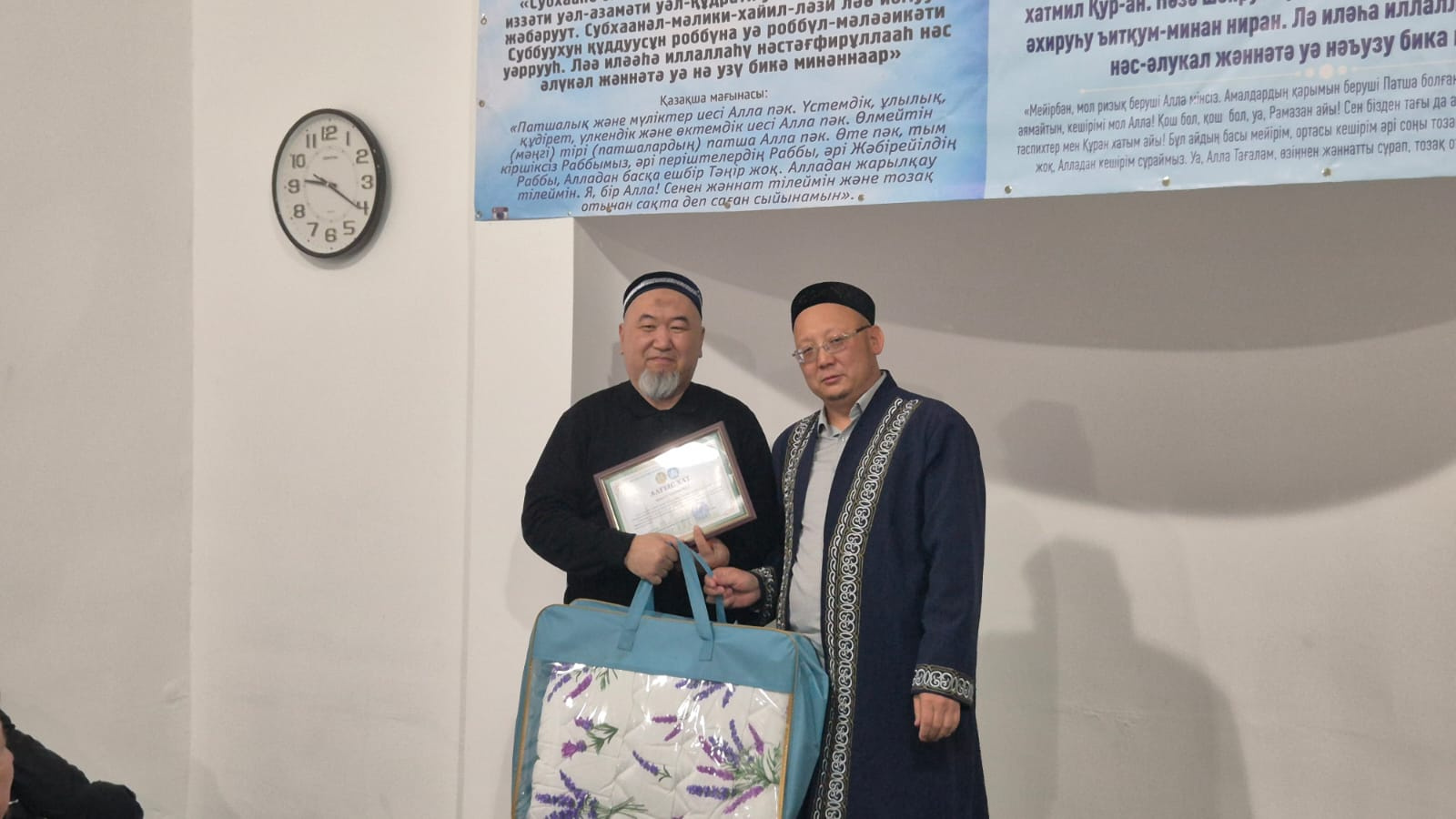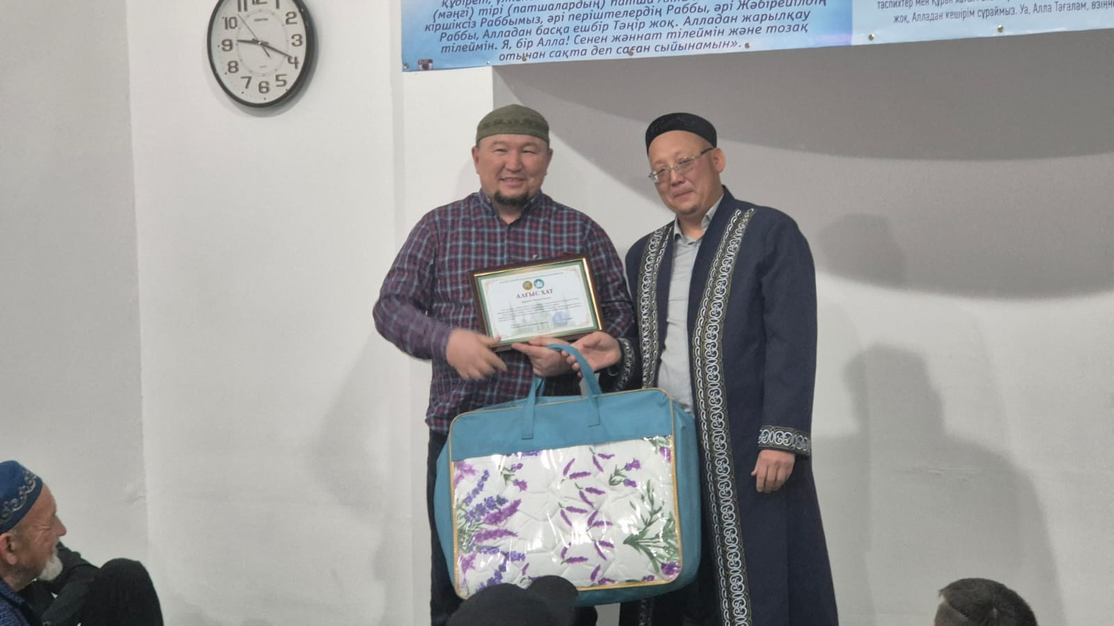 Шара барысында мешітке демеушілік көрсеткен азаматтарға, тарауих намазынан қалмай қатысқан қарияға және мешіт жанашыры болған жамағатқа алғыс хаттар табысталды. Сондай-ақ, балаларға тәттілер үлестіріліп, тарауих намазына тұрақты қатысқан бір балаға арнайы сыйлық берілді. Іс-шараны мешіт имамы Аманбаев Саламат Сәлімұлы ұйымдастырды. Қасиетті түнде жасалған дұға-тілектер мен амалдар қабыл болсын! Ниеттер қабыл, мұраттар асыл болсын!