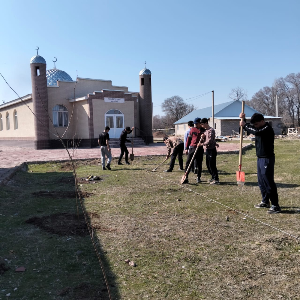 Жамағаттың бірлесуімен мешіт ауласына 15 дана тал отырғызылды. Бұл – тек көгалдандыру ғана емес, сауапты әрі сауапы үзілмейтін амалдардың бірі. Табиғатты аялау – әрбір мұсылманның міндеті.
