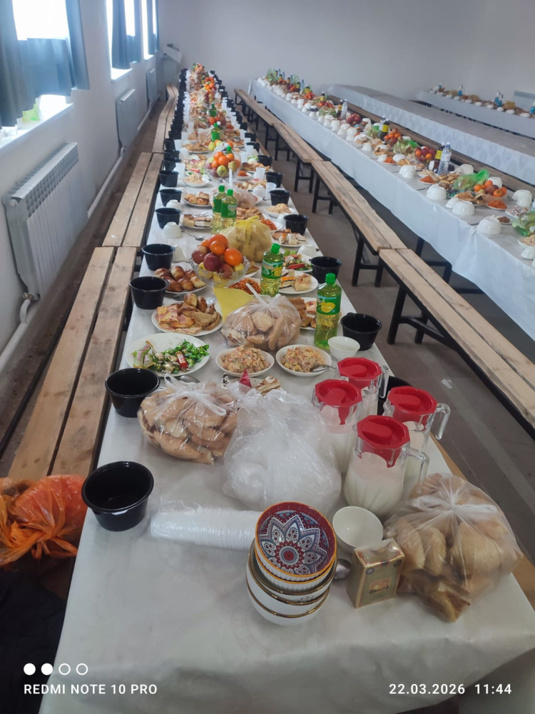 Мереке аясында ауыл мешітінің асханасында жамағатқа арналып наурыз көже таратылды. Қайырымдылық бағыттағы бұл шараға жалпы 313 мың теңге қаржы жұмсалып, көпшілікке мерекелік көңіл-күй сыйлады.