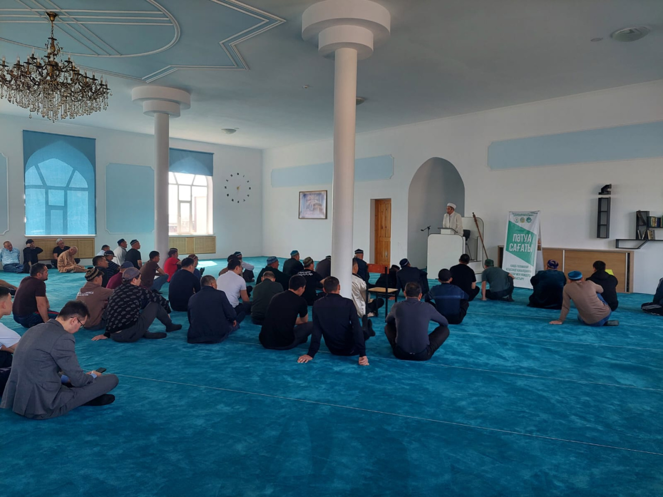 “Мойынқұм” мешітінің бас имамы Ержан Көшкімбай жамағатқа «Жеті қазық» тақырыбында пәтуа сағатын өткізді. Кездесу барысында имам адам өміріндегі негізгі рухани тіректерді ислам құндылықтарымен байланыстыра отырып түсіндірді.