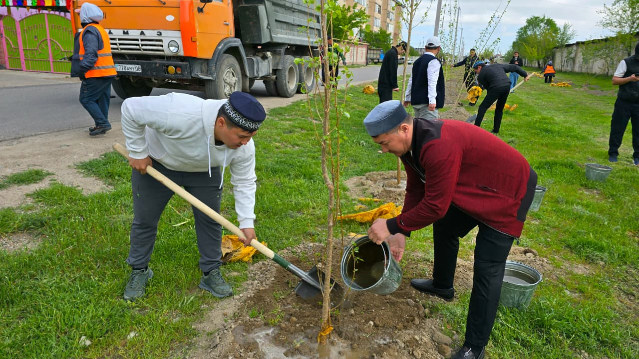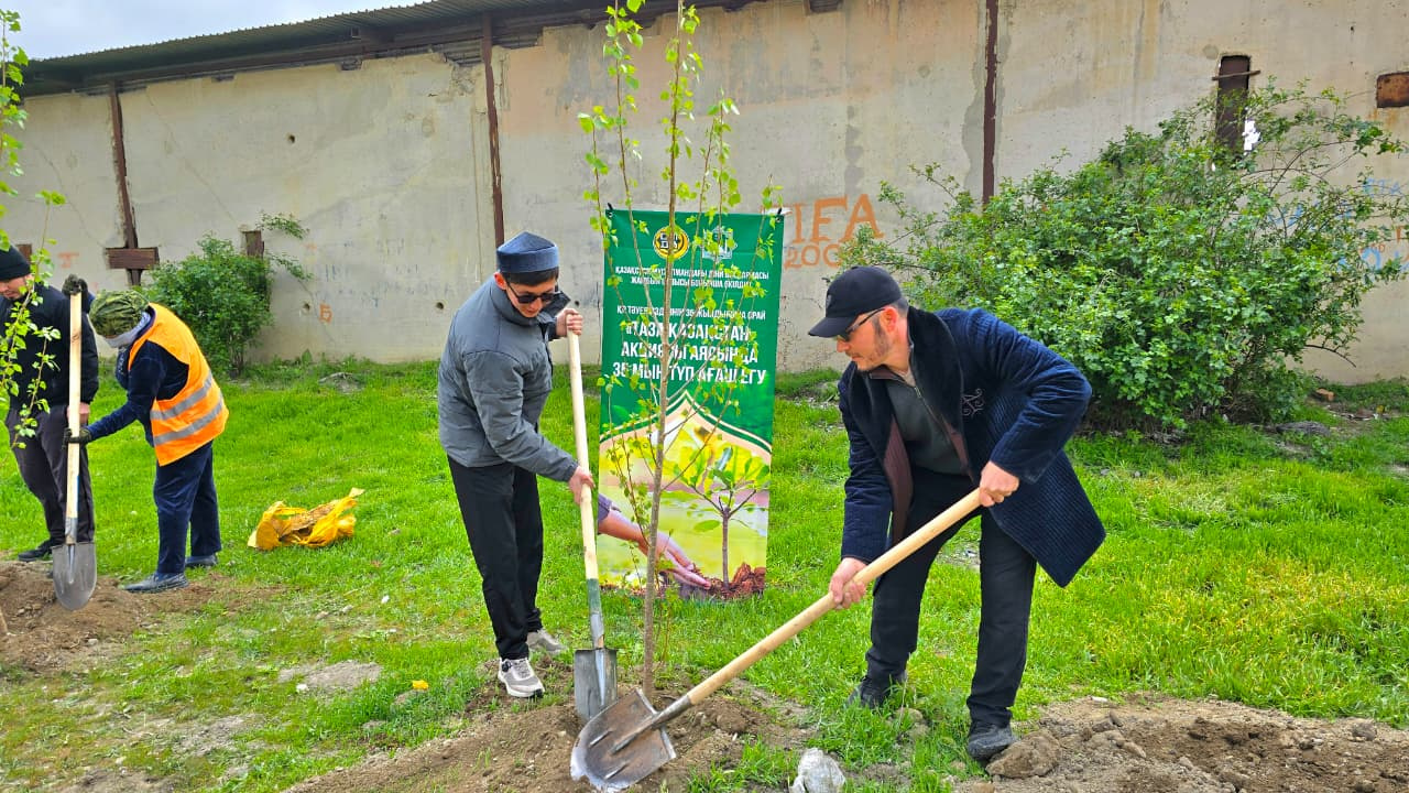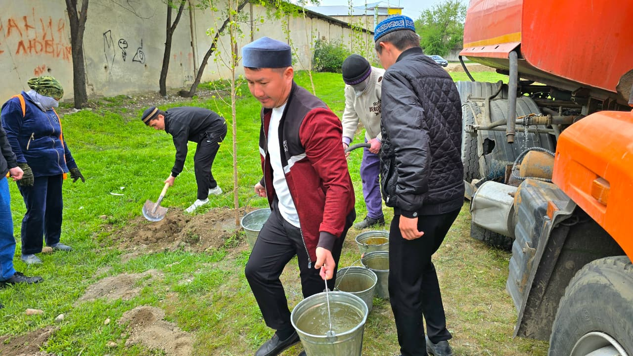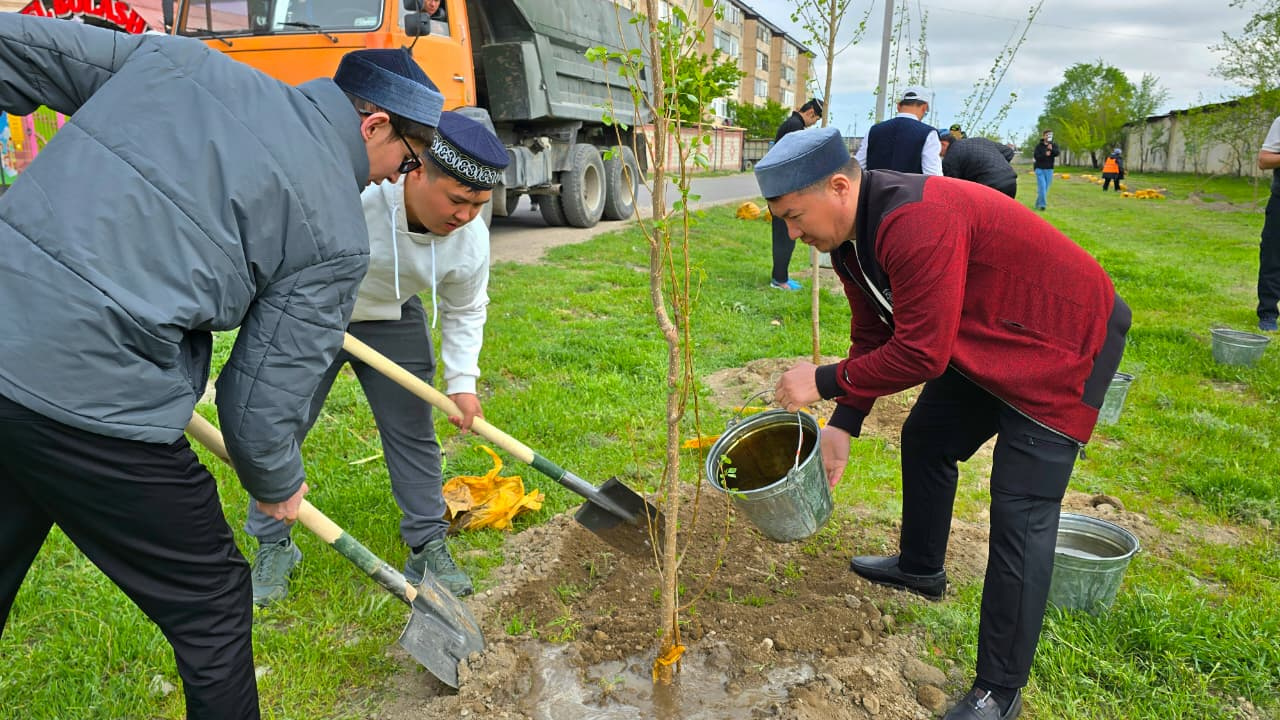Шараға ҚМДБ-ның Жамбыл облысы бойынша бас имамы Асқар Зәкіржанұлы бастаған «Һибатулла Тарази» мешітінің имамдары мен қызметкерлері, Жарбол Болатұлы бастаған "Һибатулла Тарази" медресе-колледжінің ұжымы, Тараз қаласының имамдары, Ақсақалдар кеңесінің мүшелері, Мешіт істері бөлімінің өңірдегі жауапты маманы Халид Қожахметовтің ұйымдастыруымен белсенді жамағат атсалысып, көгалдандыру жұмыстары жүргізілді. Отырғызылған көшеттер суарылып, тиісті күтім жасалды.