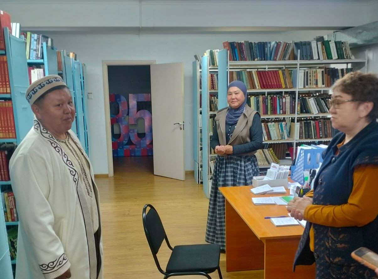 Кітапхана қызметкерлерімен жүздесу барысында бас имам олардың еңбегіне алғыс білдіріп, қоғамда білім мен руханиятты дамытудағы кітапхананың маңызына ерекше тоқталды.