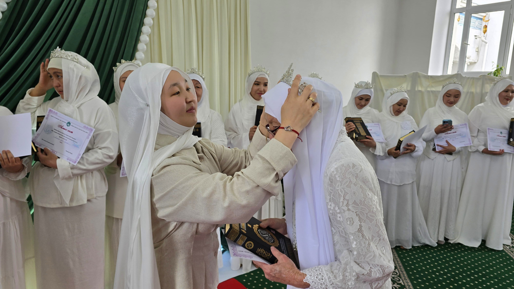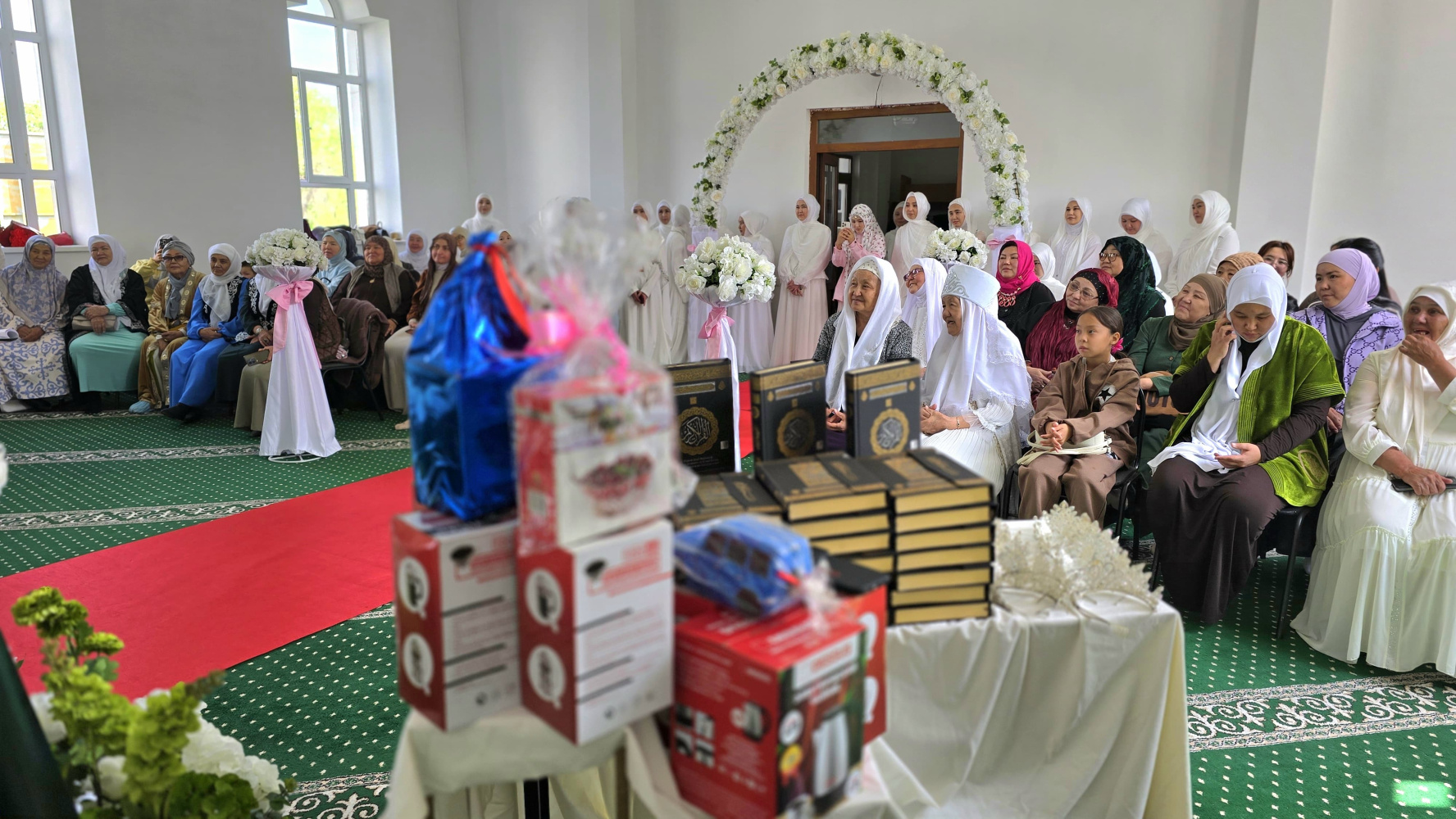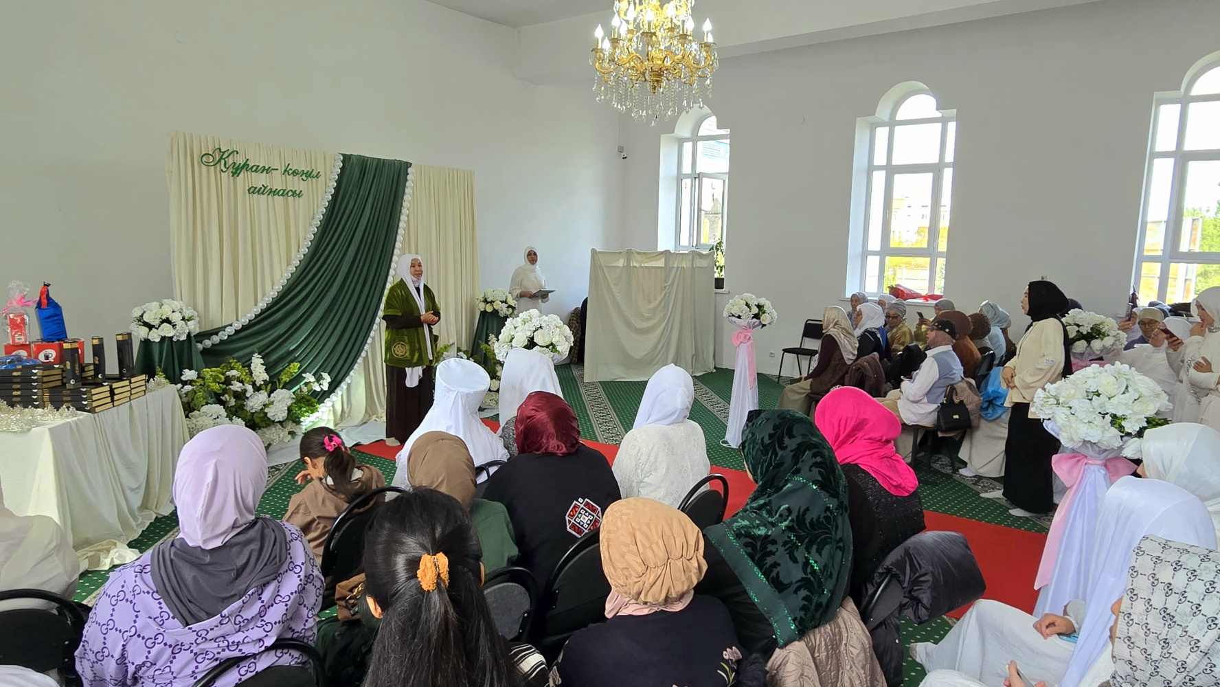 Тараз қаласындағы «Һибатулла Тарази» мешітінде рухани кеш өтті. Әйел-қыздар секторының қолдауымен ұйымдастырылған жиында діни сауат ашу курсында білім алып жүрген 35 шәкірт Құранға түсті.