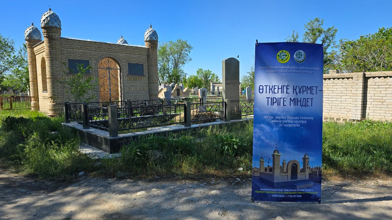 Жамбыл облыстық «Һибатулла Тарази» мешітінің жанындағы «Қамқор-Шарапат» салттық қызмет көрсету орталығының ұйытқы болуымен «Өткенге құрмет – тіріге міндет» атты шара өтті. Игі бастама аясында зират аумағын ретке келтіру, тазалау және абаттандыру жұмыстары жүргізілді.