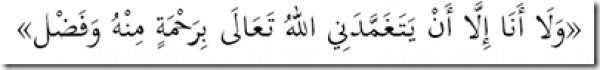 Обитатели Рая скажут, что Аллах ввел их в Рай по «Своей милости». Посланник Аллаха (мир ему) сказал: «Ни один из вас не попадет в рай и не спасется от ада только благодаря своим деяниям, и даже я, потому что это возможно только благодаря милости Аллаха».