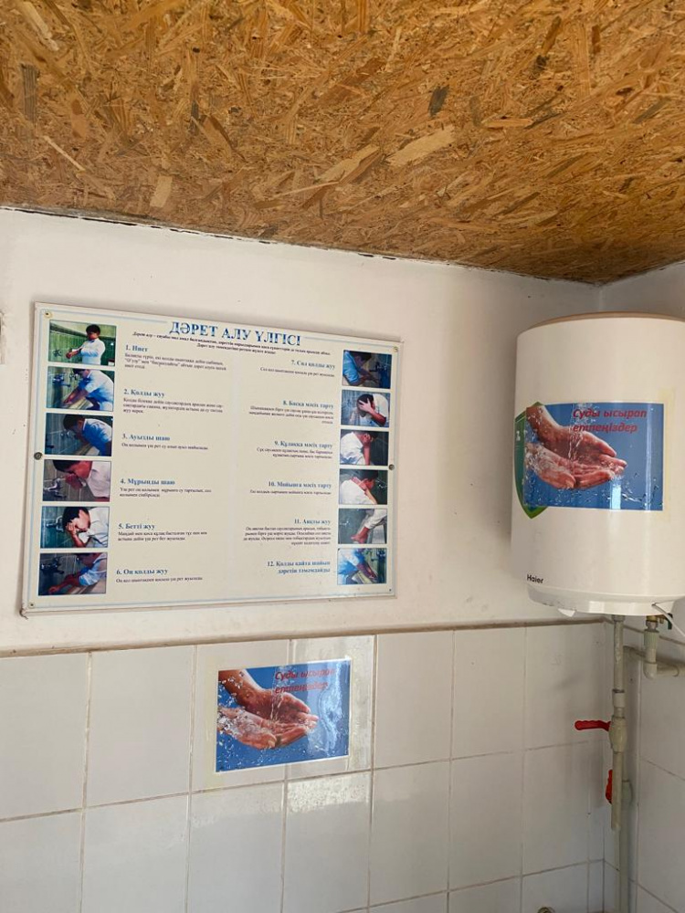 Жамбыл ауданы орталық «Бәйдібек» мешітінің найб имамы Жандос Жұмағұлов пен мешіт жамағатының ұйымдастырумен дәретханада қысқа дайындық жұмыстары жүргізілді. Дәретханаға арнайы сөрелер орнатылды. Ыстық сумен қамтамасыз етілген дәретханаға арнайы постерлер мен дәрет алу үлгісі де жабыстырылды. Аудан имамы Ғайырфулла Қуанышбекұлы мешіт жамағаттарына өз алғысын білдірді.